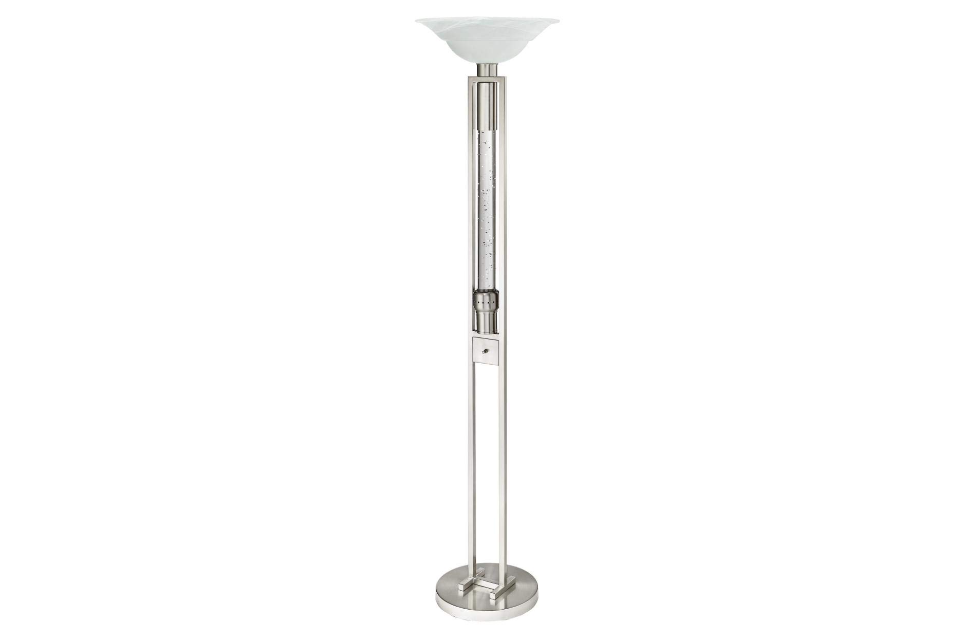 Homelegance Lámpara de pie de metal de níquel satinado con columna cilíndrica larga brillante decorativa de gota de agua bailando