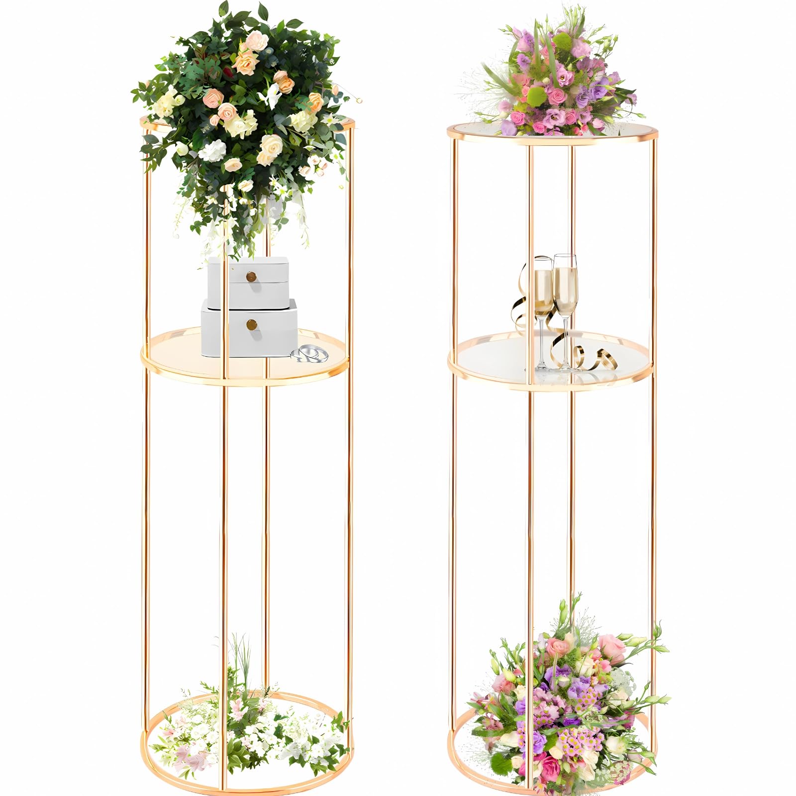 2 soportes redondos dorados de 2 niveles para tartas para fiestas, soportes de pedestal de metal alto para decoración de exhibició
