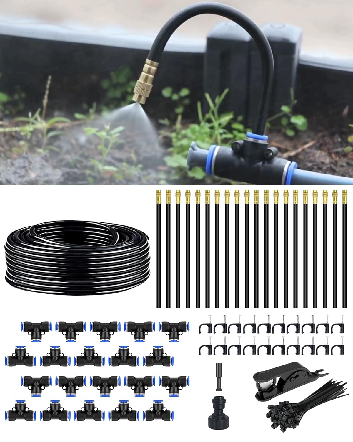 Sistema de riego por goteo para riego de jardín: kit de dispositivo de nebulización hidropónica de 360 ° de 65 pies con manguera d