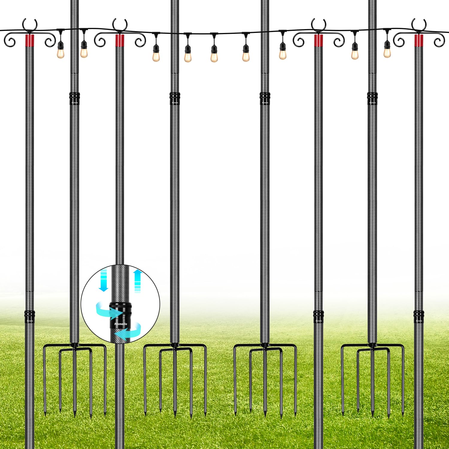 Postes de tira de luces para exteriores de 10 pies, postes telescópicos de luz al aire libre para luces, 2 secciones de fácil inst