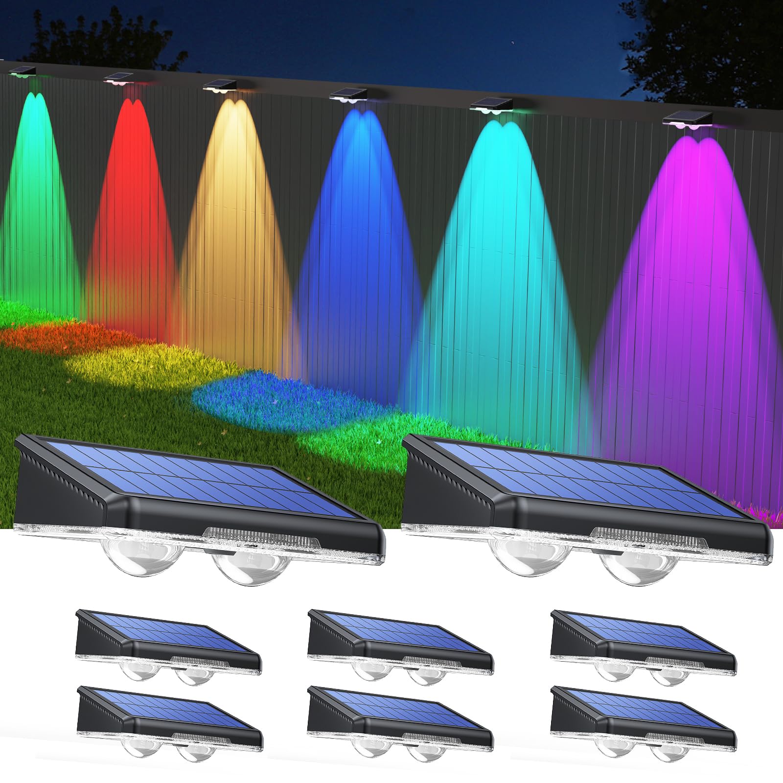 TECKNET Paquete de 8 luces solares RGB para valla, ultra brillantes, 8 modos de iluminación con respiración RGB, del atardecer al