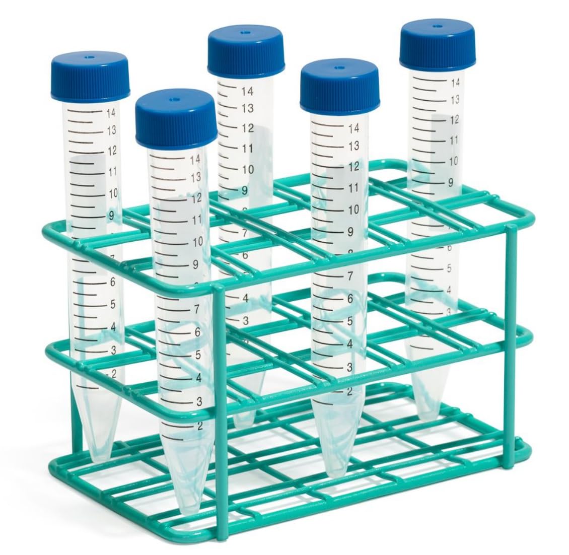 United Scientific™ Expoxy Coated Wire Rack, 15 mL Centrifuge Tubes, 15 Place, Teal