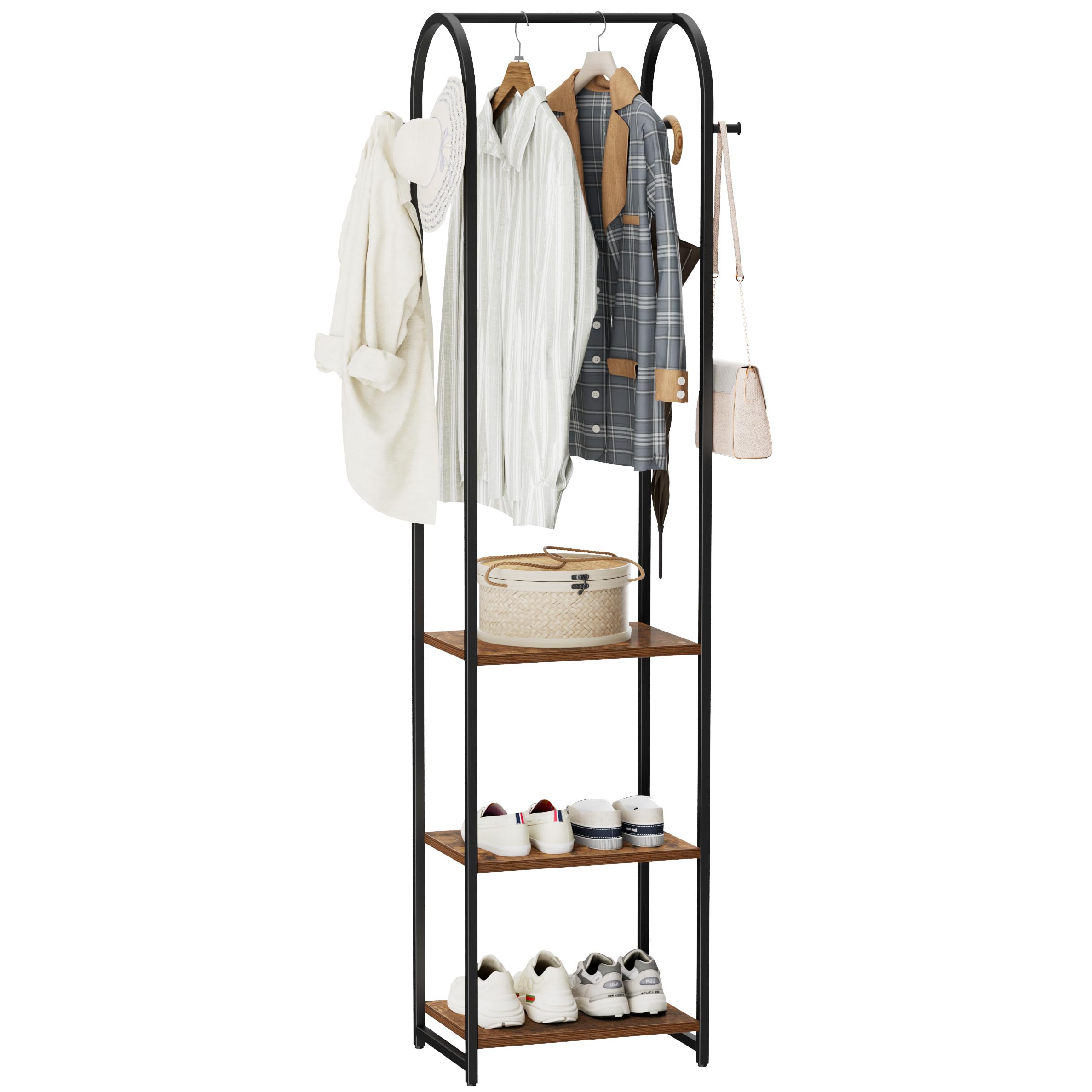 Perchero con 3 estantes y 4 ganchos, soporte de ropa de 71 pulgadas de alto para colgar ropa, barra colgante para dormitorio, pasi