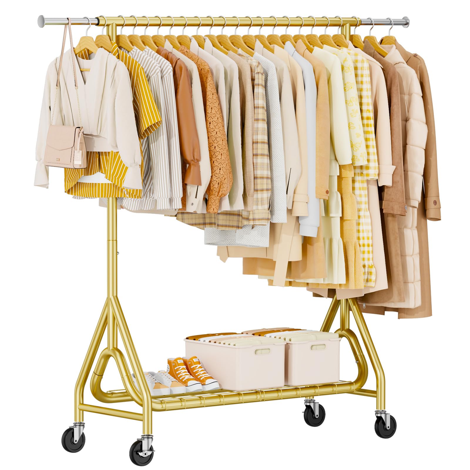 Perchero de ropa resistente, estante de metal para ropa de carga de 450 libras, percheros enrollables para colgar ropa con ruedas