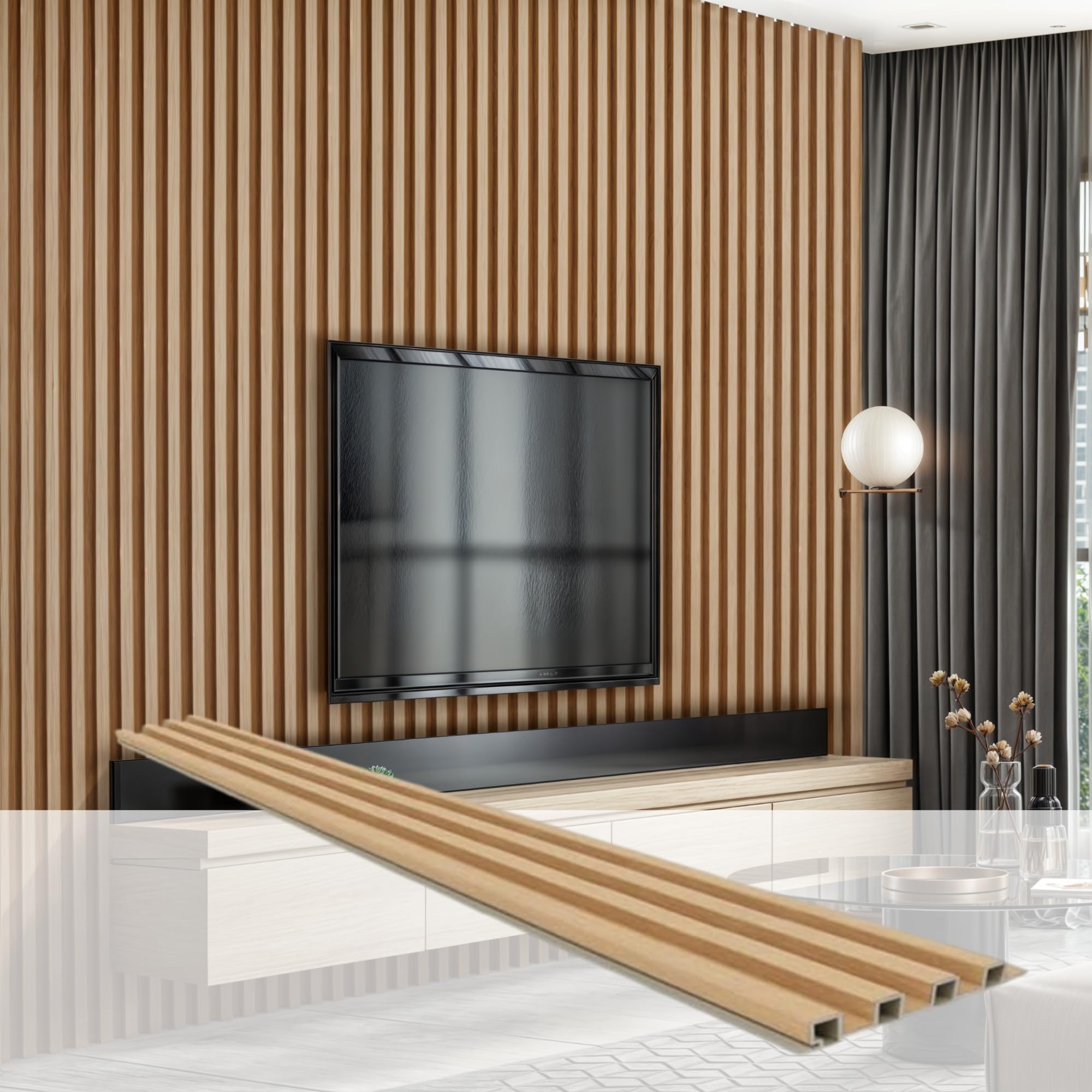 DEKKOR Paquete de 8 paneles acústicos WPC de pared de listones acústicos de 96 x 6 pulgadas, paneles decorativos modernos para fon