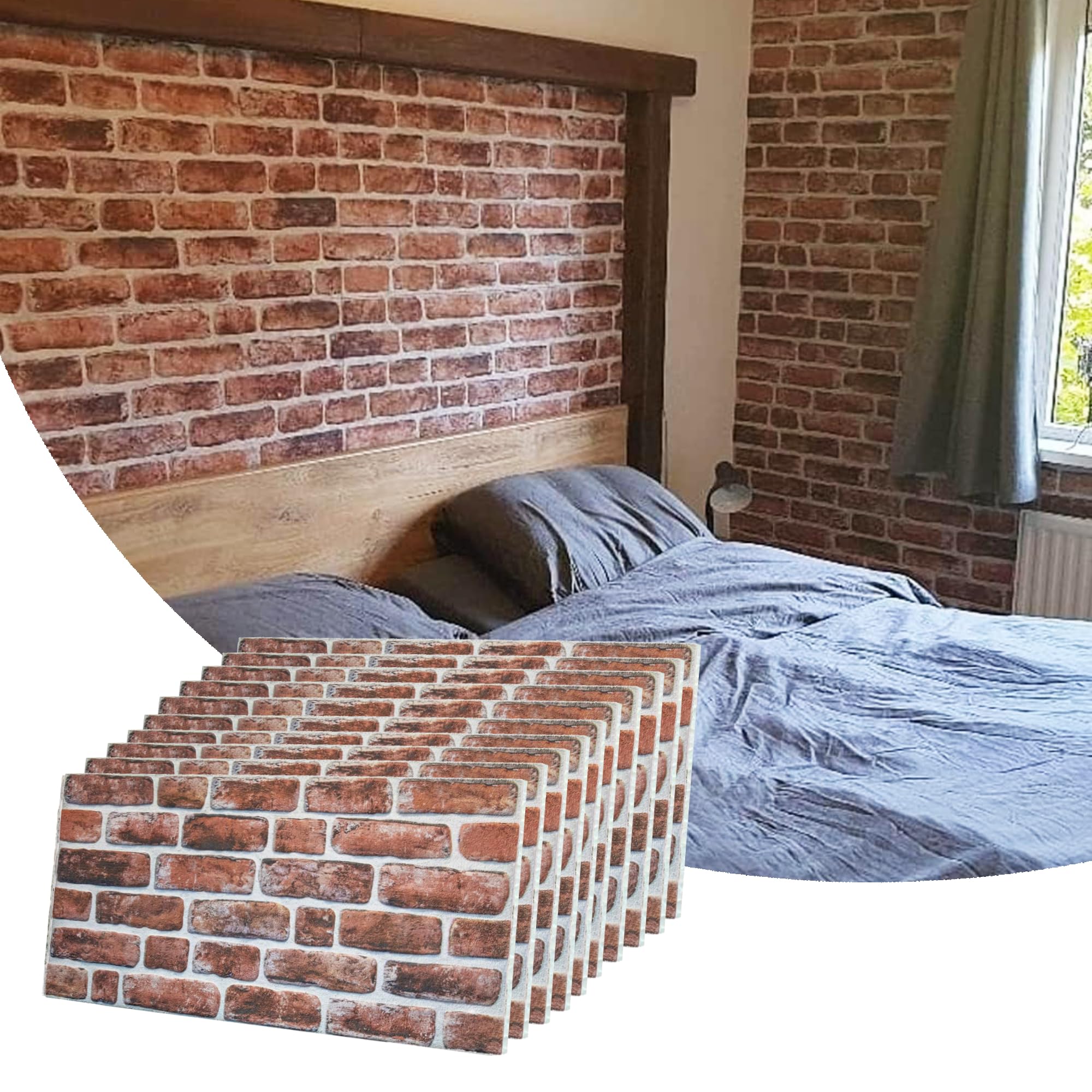 10 paneles de pared 3D de espuma de ladrillo 3D para despegar y pegar, paneles de pared de piedra sintética autoadhesivos (10 unid