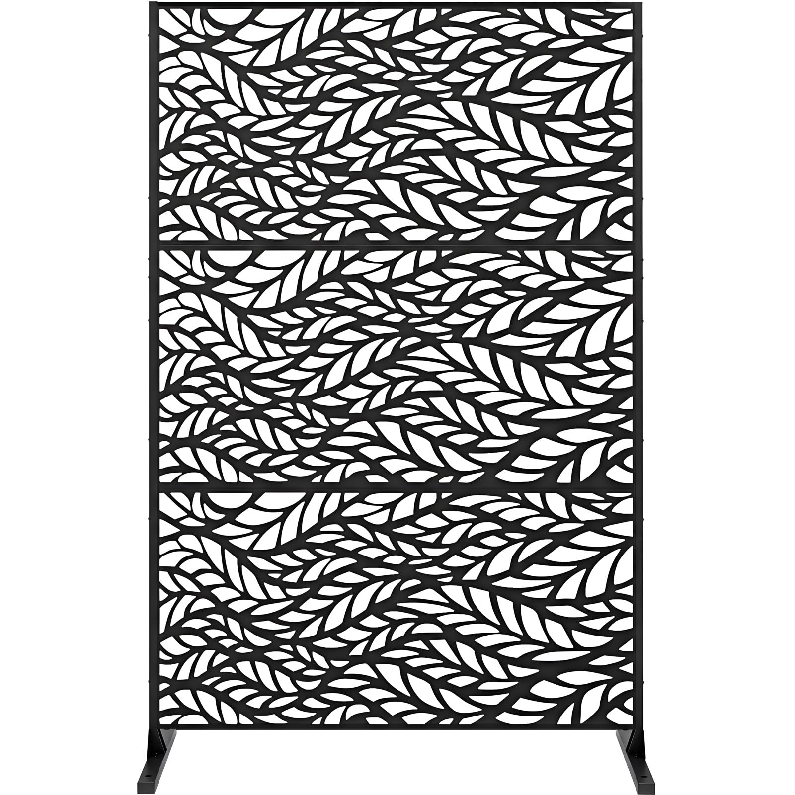 NeuType Divisor decorativo de privacidad para exteriores con soporte, con corte láser preciso, material metálico, color negro