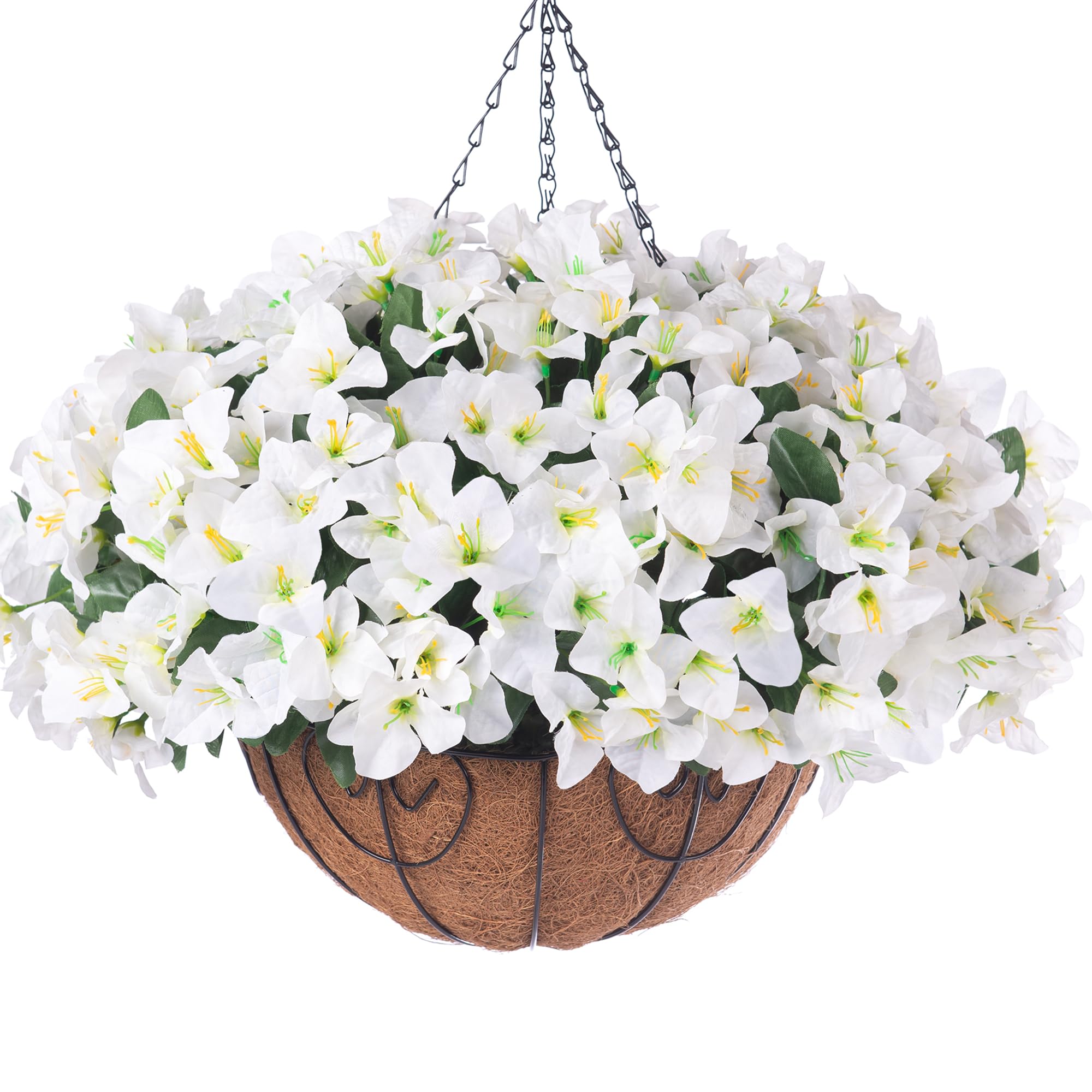 Flores colgantes artificiales con cesta para exteriores, plantas colgantes falsas de buganvillas de seda en maceta, flores sintéti