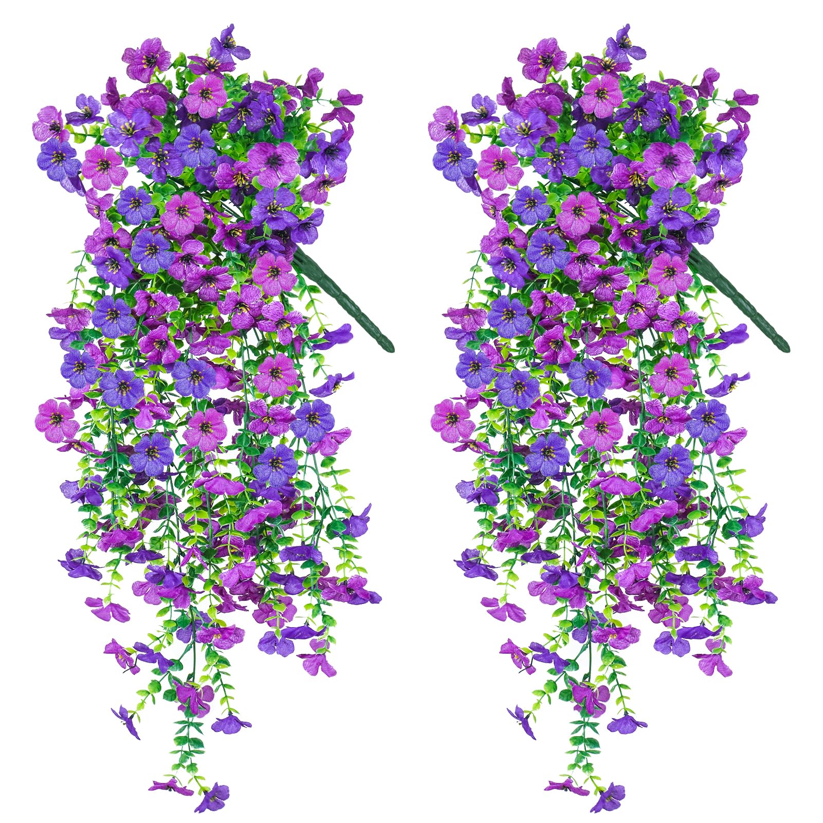 Flores colgantes artificiales para decoración de exteriores, paquete de 2, flores colgantes falsas, resistentes a los rayos UV, pl