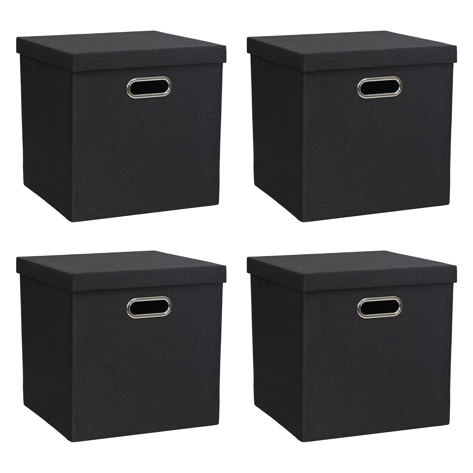 Cajas de almacenamiento de tela con tapas, cestas plegables de tela de lino, contenedores organizadores de armario con asas dobles