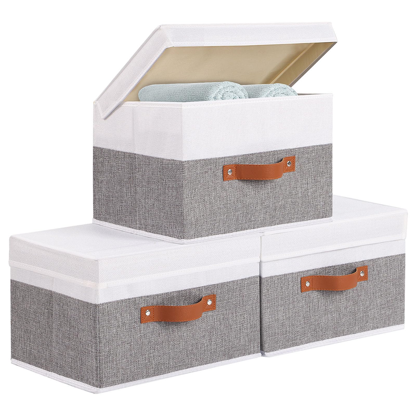 Contenedores de almacenamiento con tapas, cajas de tela de lino con tapa, cesta de almacenamiento plegable para armario, estantes,