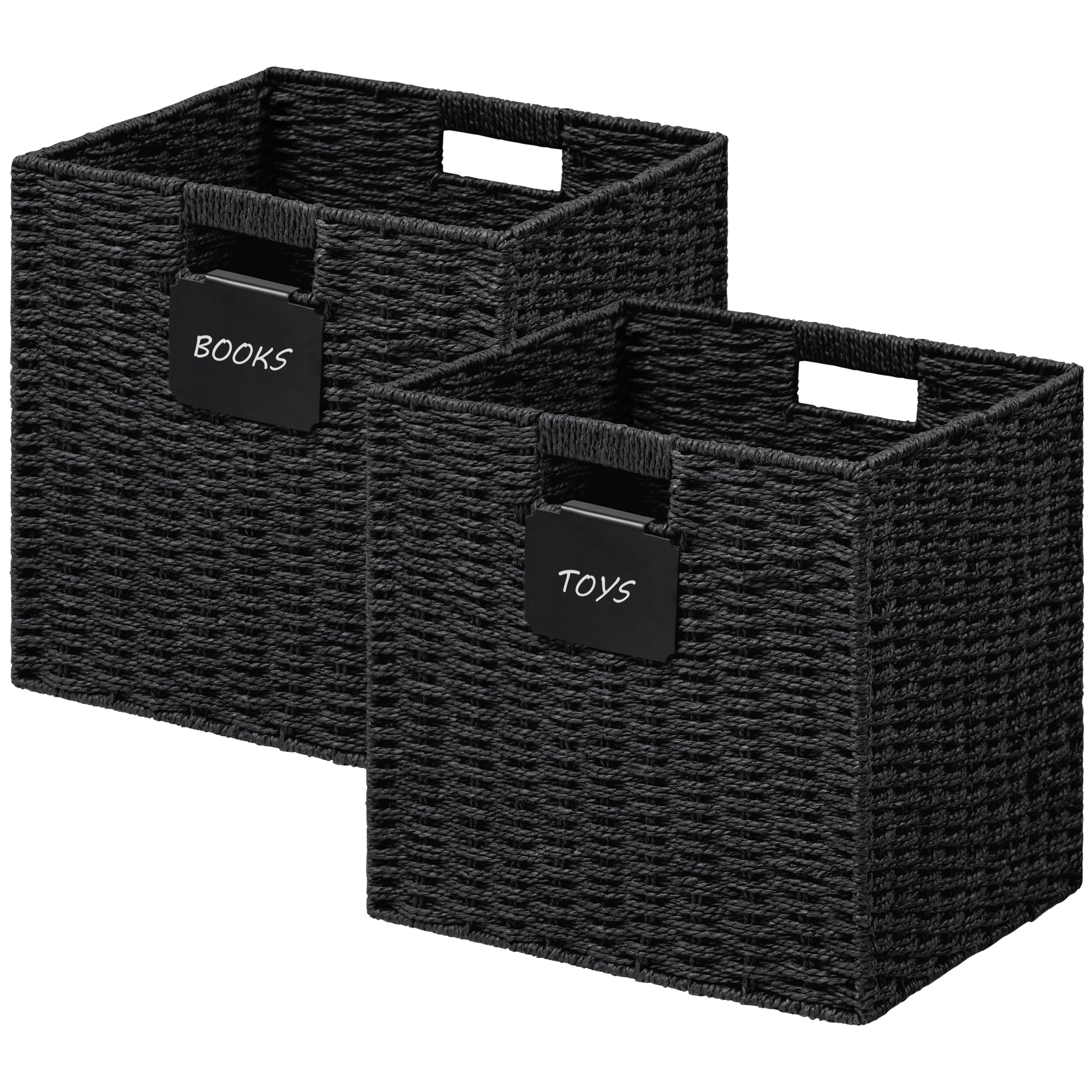 UBBCARE Paquete de 2 cestas de mimbre, cubos de almacenamiento de 10.5 x 10.5 con etiqueta, cubo de almacenamiento plegable con as