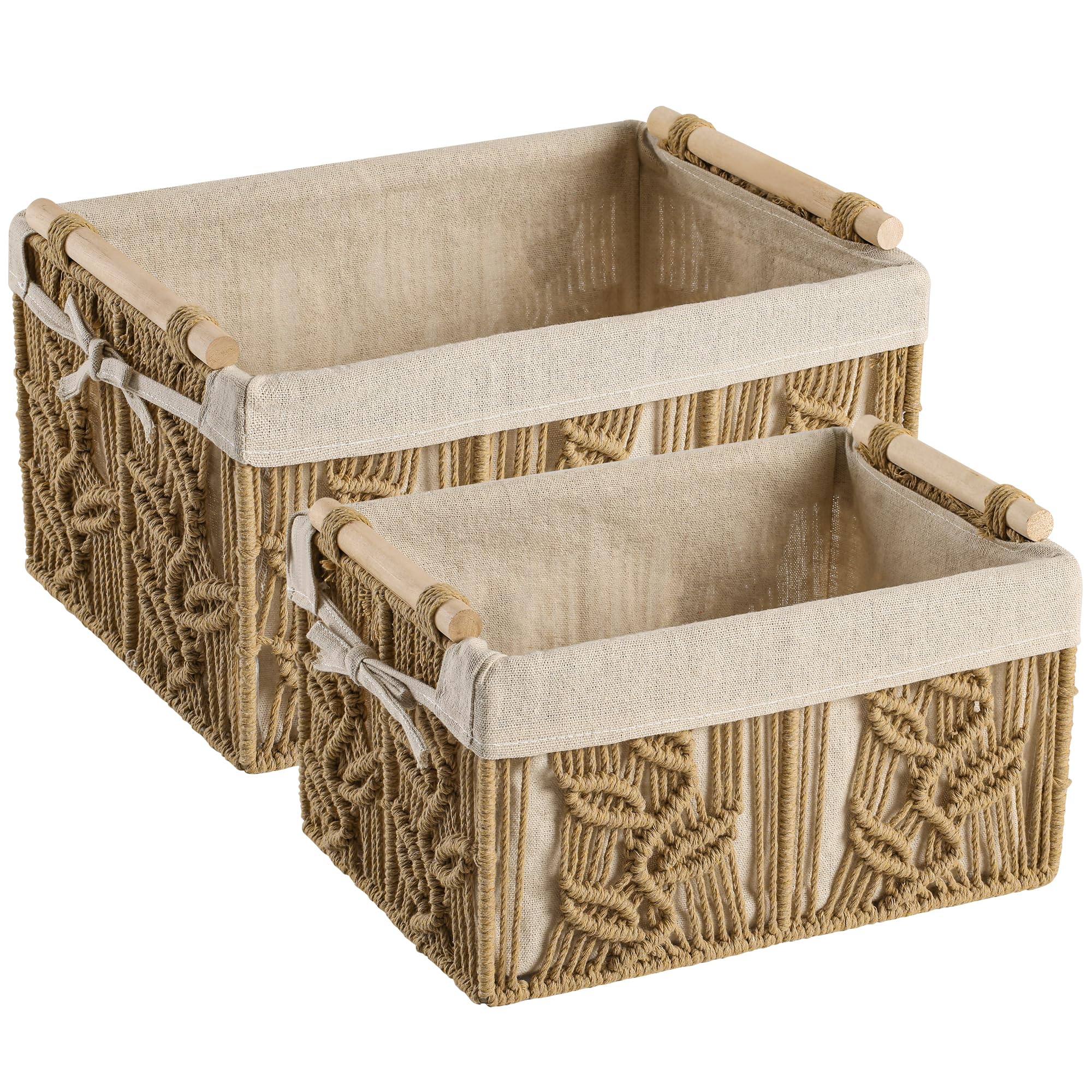 Paquete de 2 cestas de almacenamiento rectangulares, de tela de lino y algodón, con asas de madera, cesta de regalo grande para ar