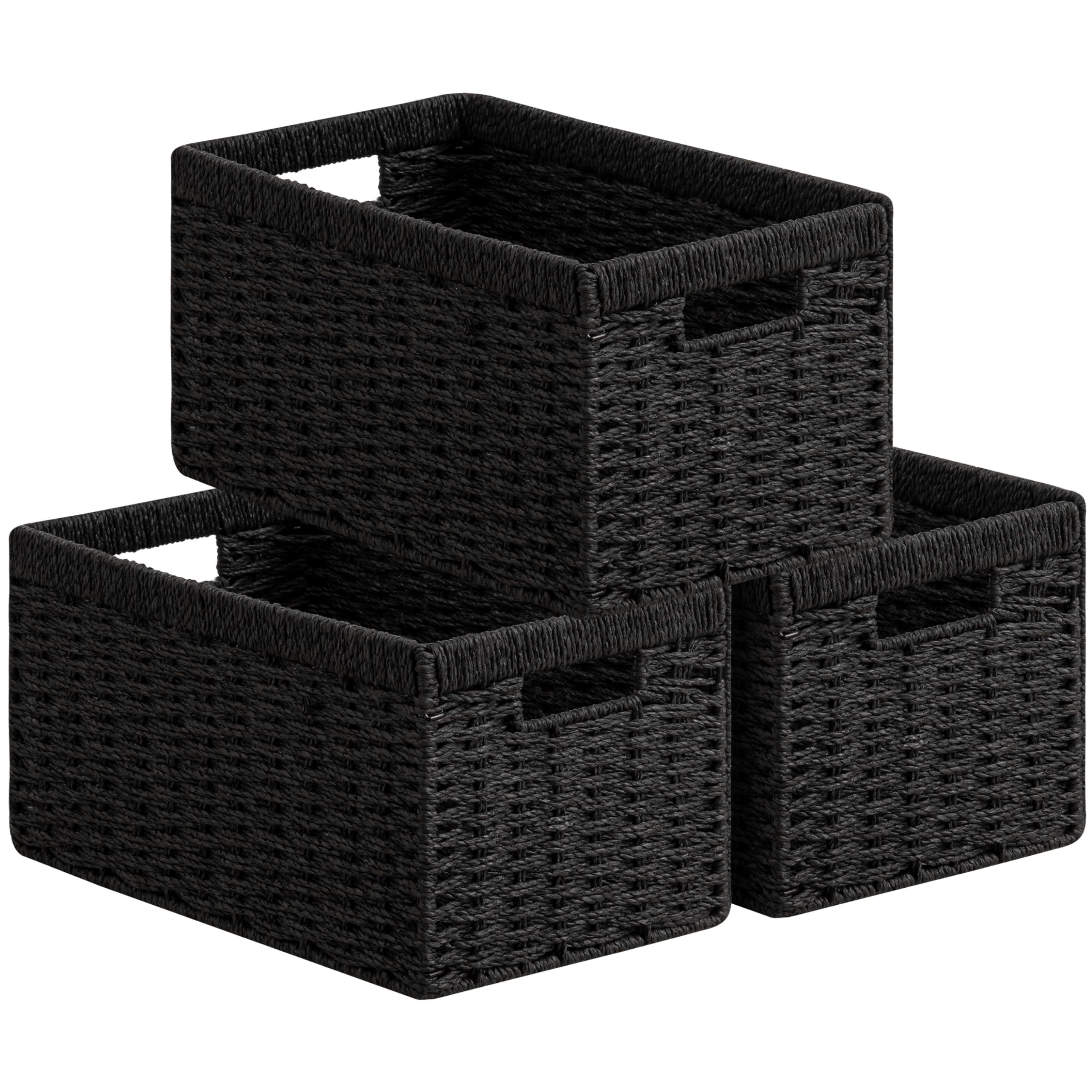 joybest Cestas de almacenamiento de mimbre negro, cestas de mimbre de cuerda de papel tejidas a mano para organizar, contenedores