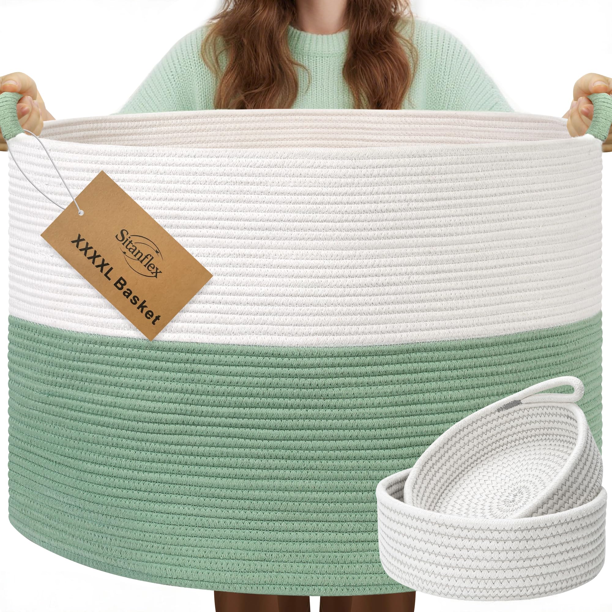 XXXXL 125L Extra Large Blanket Basket, Woven Basket for storage with Handle, Cotton Rope Basket for Living Room, Laundry, Baby Toy