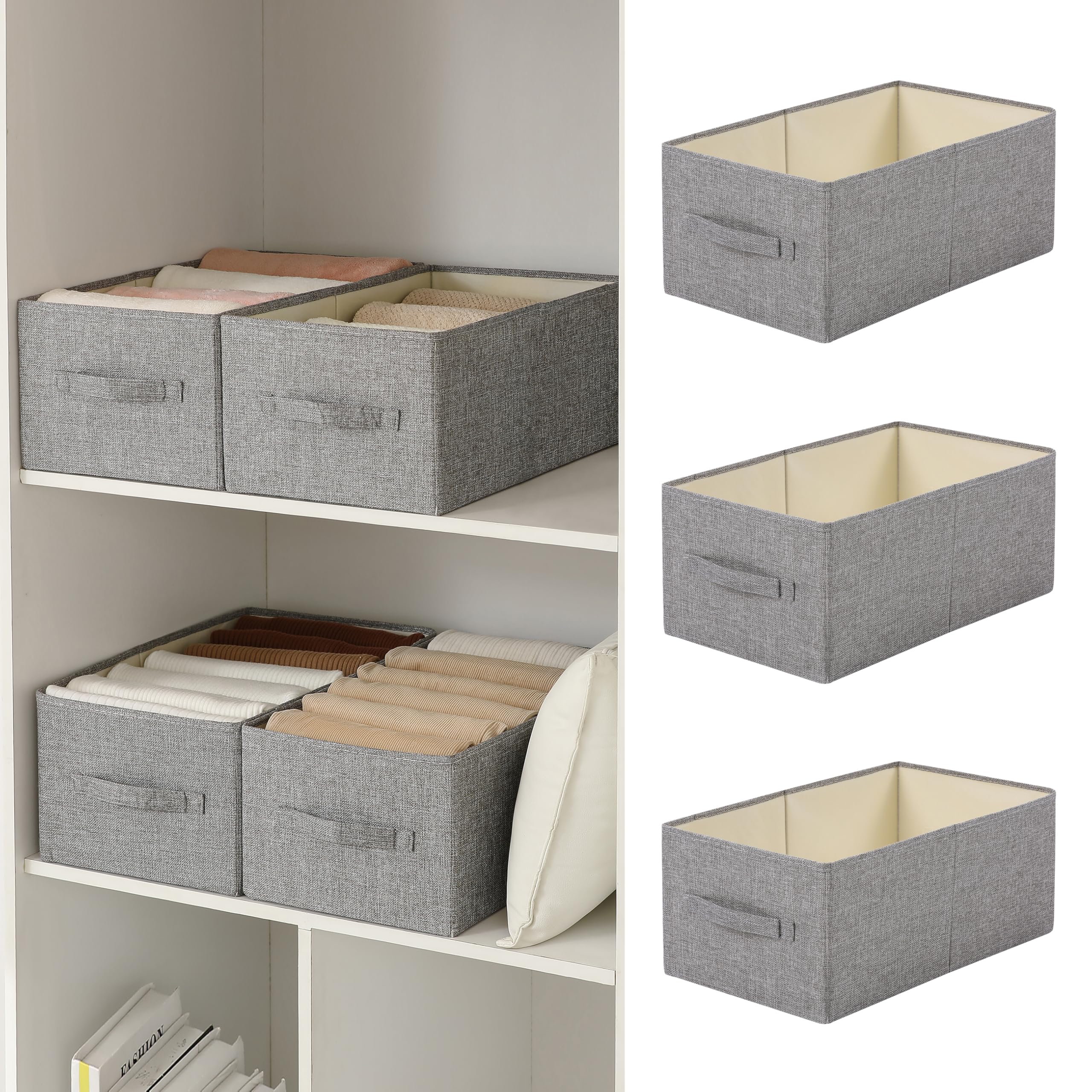 Cajas de almacenamiento [4 unidades], cesta de almacenamiento plegable, organizador de armario de tela y organizador para el hogar