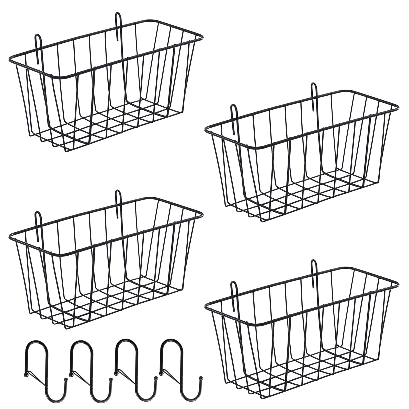 Cestas de pared de rejilla grandes con gancho en S, juego de accesorios de rejilla para estantes colgantes, organizador de cestas