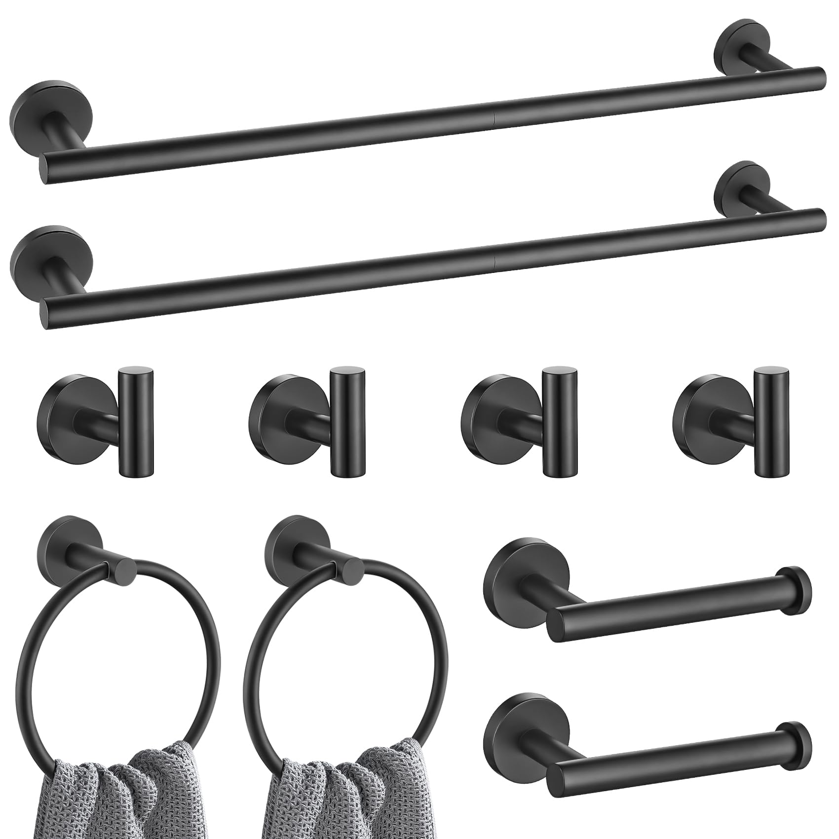 Lairuier Juego de accesorios de baño negro mate, juego de 10 piezas de toallero de acero inoxidable SUS304, juego de accesorios de