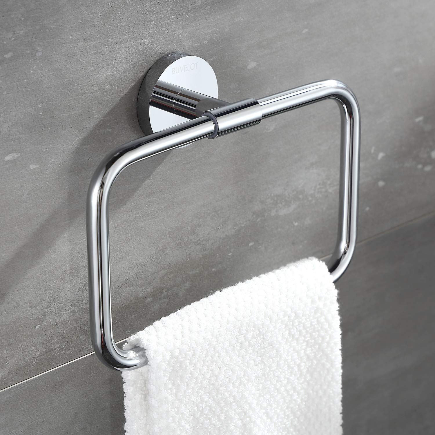 HouseAid Anillo cuadrado para toalla de mano para baño, soporte de toalla de acero inoxidable, moderno colgador de toalla de mano,