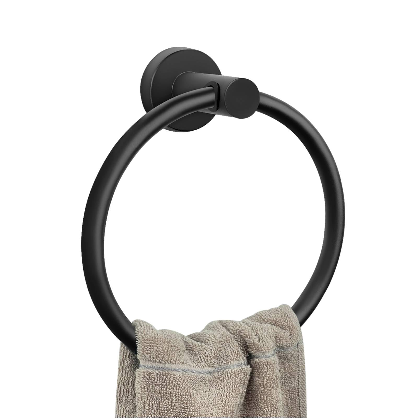 Toallero redondo negro mate, toallero de mano para baño, colgador de toallas de acero inoxidable, montaje en pared, accesorios de