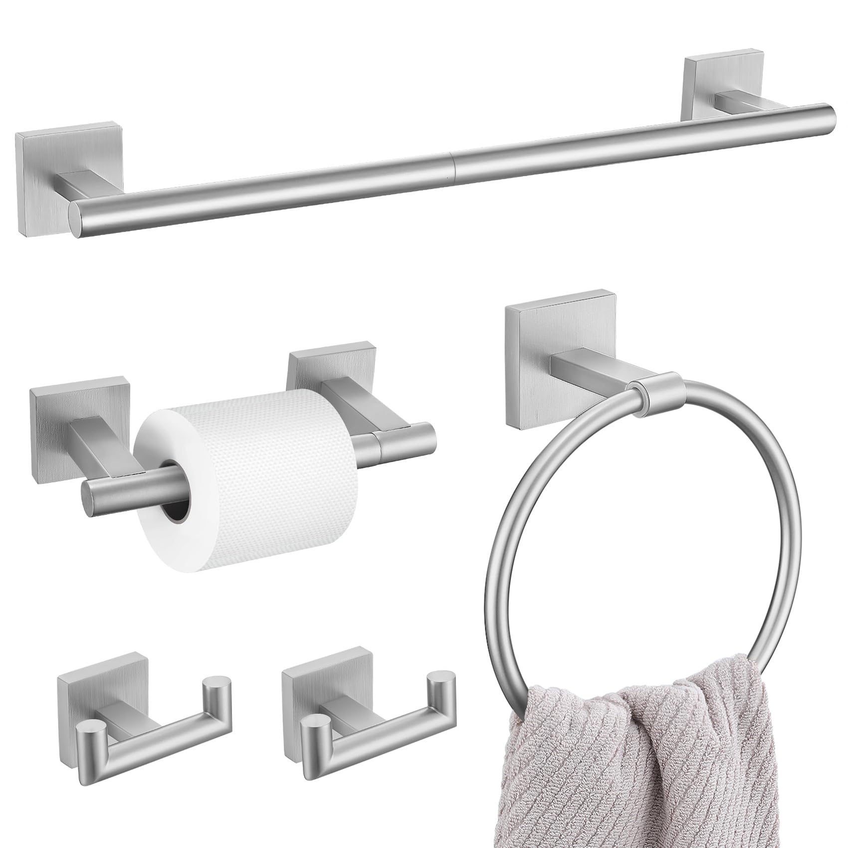 Juego de accesorios de baño de níquel cepillado, juego de 5 toallas de baño con barra de toalla de 23.6 pulgadas, anillo de toalla