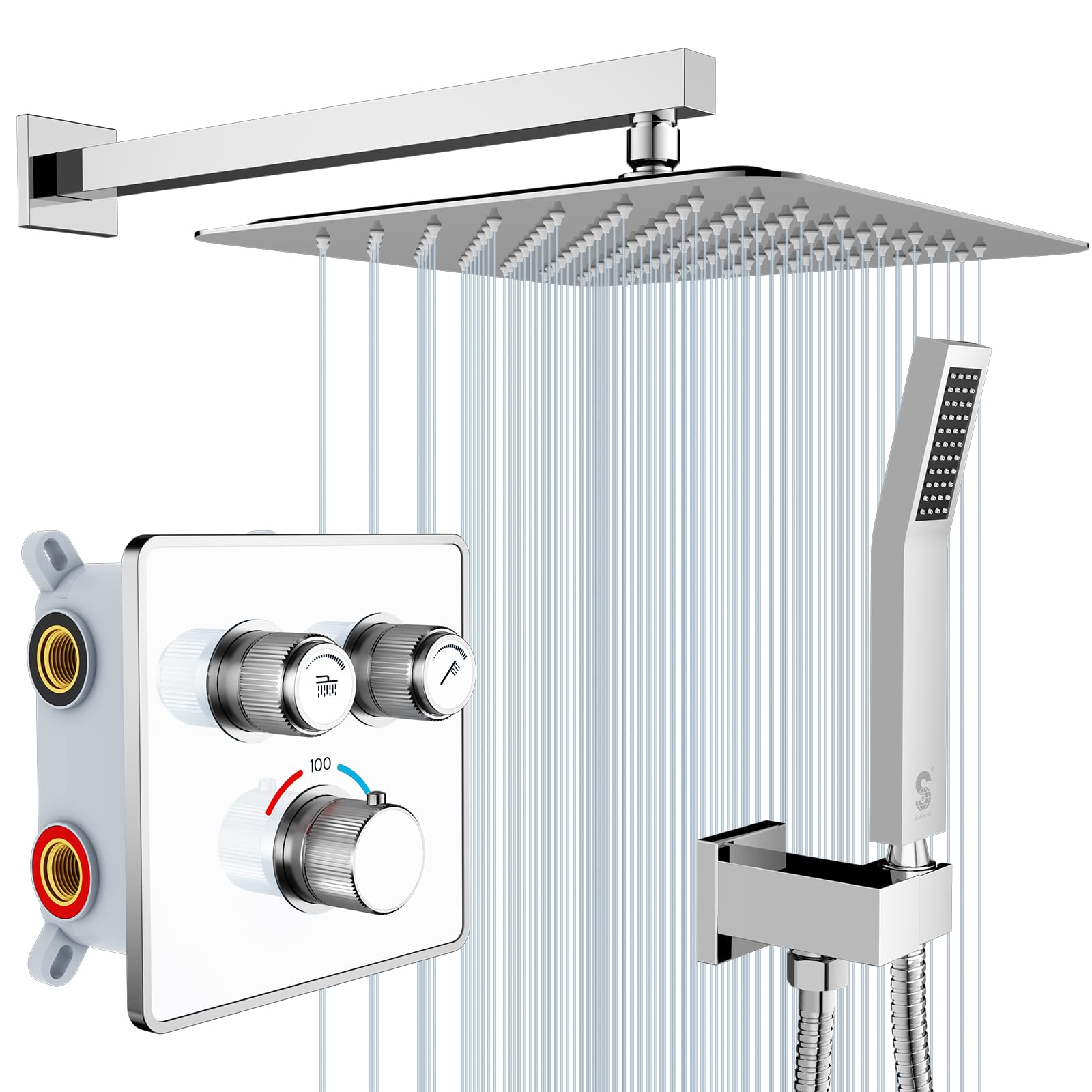 SR SUN RISE Sistema de ducha termostático con botones de flujo de agua ajustables, cabezal de ducha de lluvia de lujo de 12 pulgad