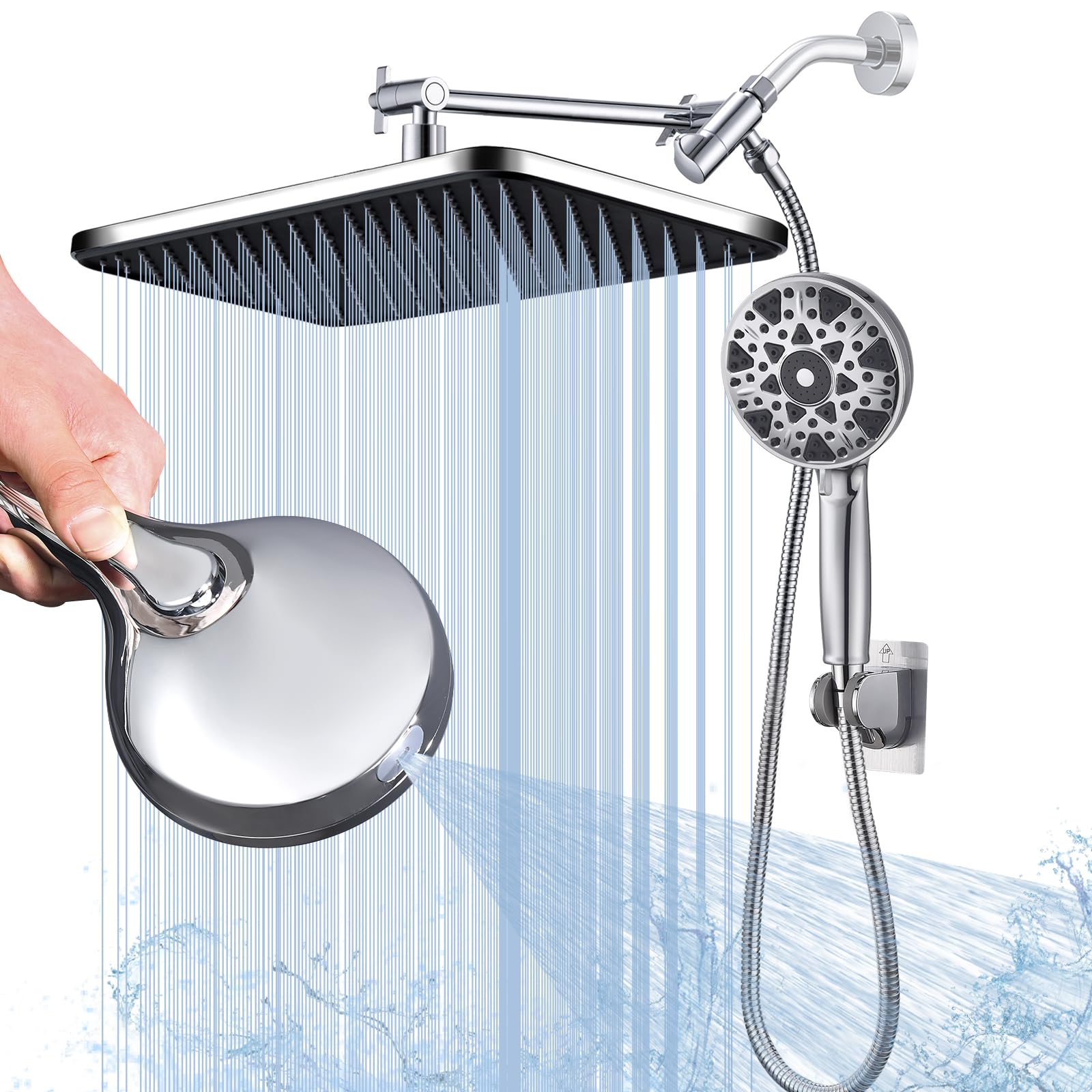 Hibbent Cabezal de ducha de lluvia autolimpiante de 10 pulgadas, cabezal de ducha de mano de alta presión, combo de cabezal de duc