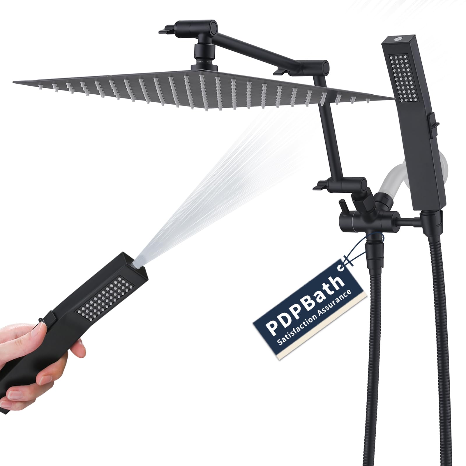 PDPBath Cabezal de ducha de lluvia de metal con rociador de mano, cabezal de ducha de lluvia de alta presión de 12 pulgadas con br