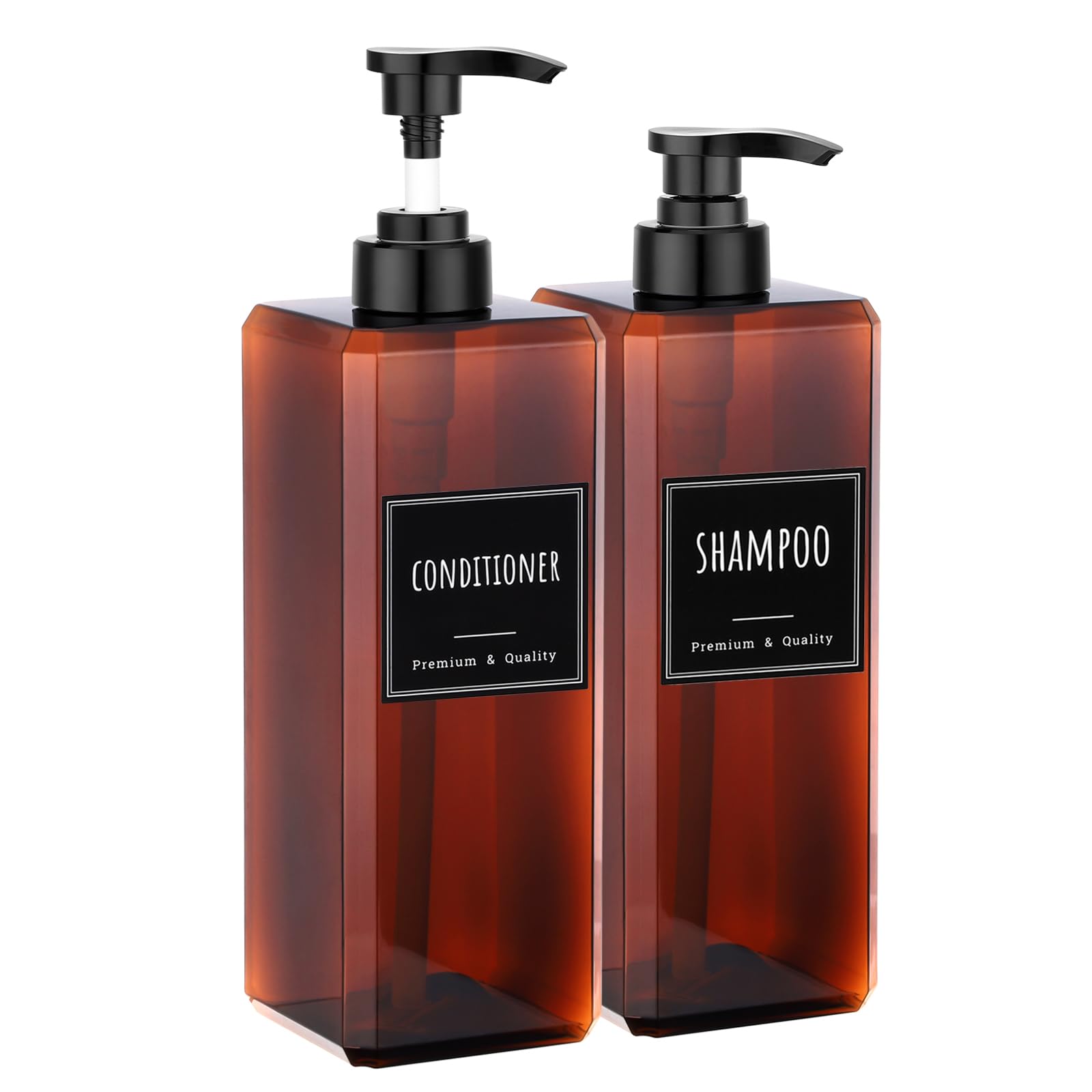 Segbeauty Dispensador de jabón ámbar vacío de 33.8 onzas, dispensador de botellas de plástico grande con etiquetas, botellas cuadr