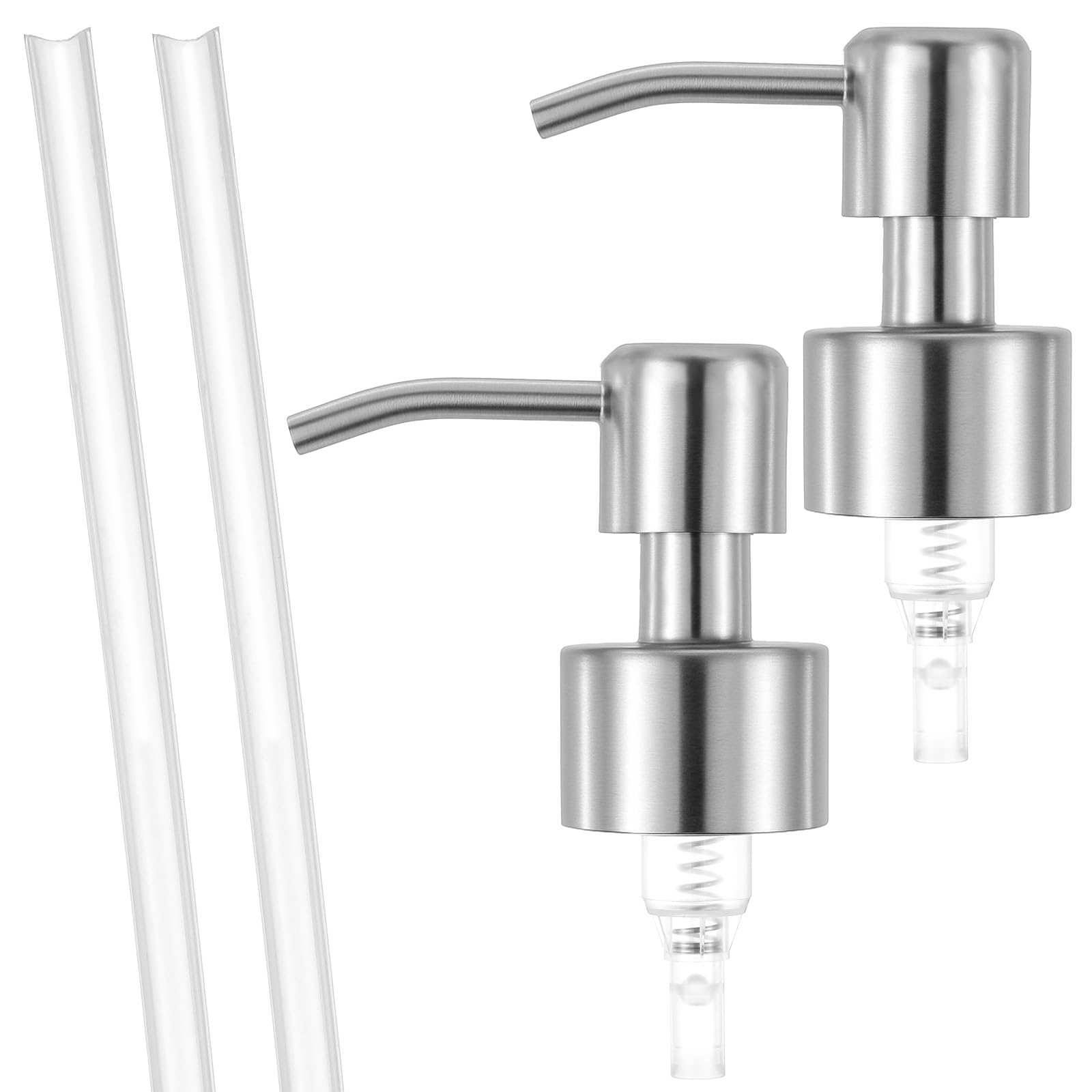 2 Pack Soap Dispenser Replacement Pump, Reusable Soap Dispenser Pump Head Stainless Steel Hand Dispensers Top for Hand Dish Bottle