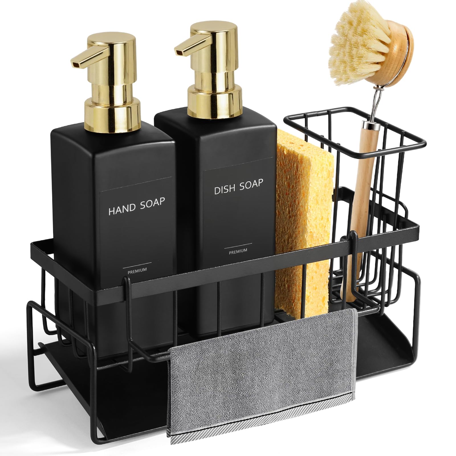 GMISUN Dispensador de jabón para platos para cocina, dispensador de jabón de cocina de 12 onzas líquidas con soporte para esponja,