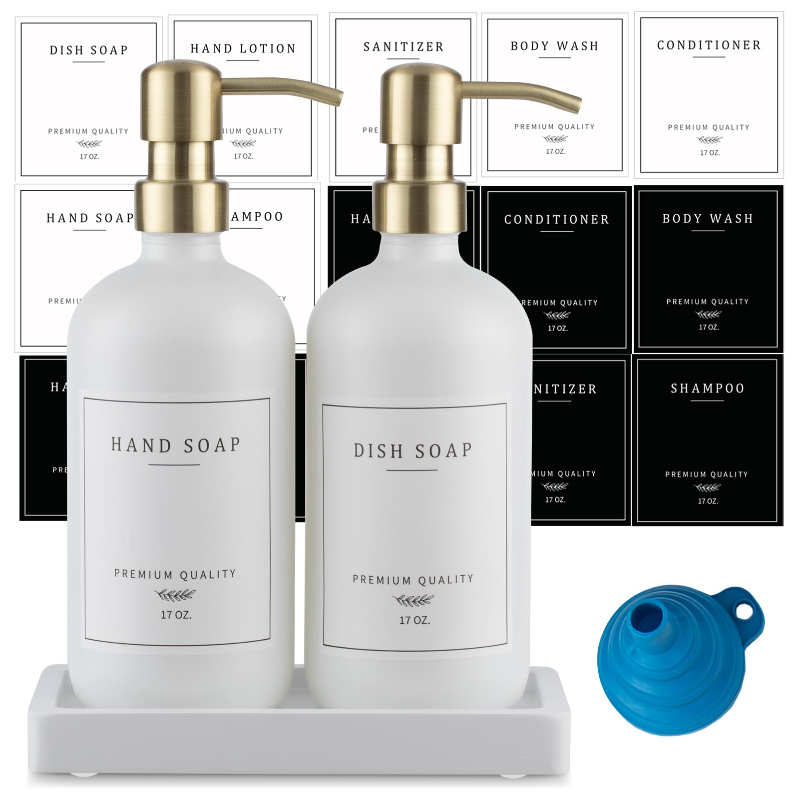 Dispensador de jabón de cocina de 17 onzas con bomba de acero inoxidable, paquete de 2 dispensadores de jabón y loción de vidrio á