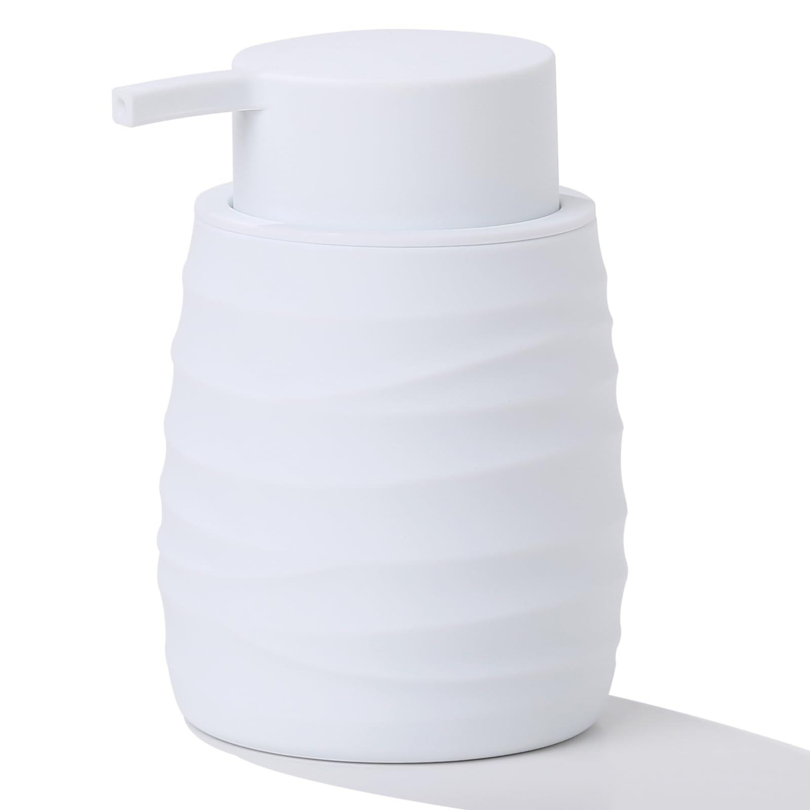 Dispensador de jabón de manos blanco con bomba antióxido para encimeras de baño y cocina, recargable en espiral de plástico mate,