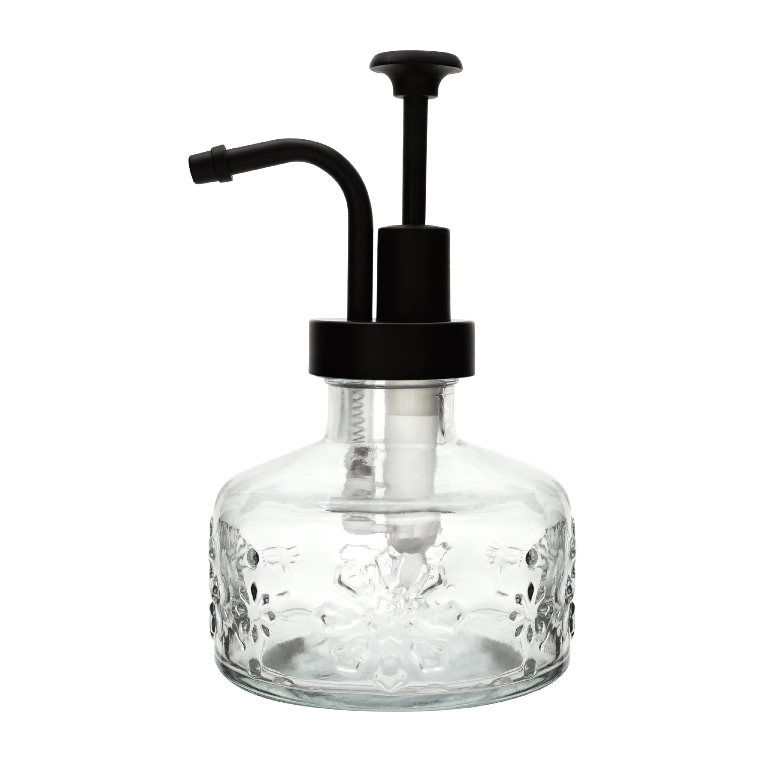 Cute Mini Glass Soap Dispenser with Pump, 6oz Vintage Gothic Style, Colored Thick Glass, for Bathroom or Vanity Decor (Transparent