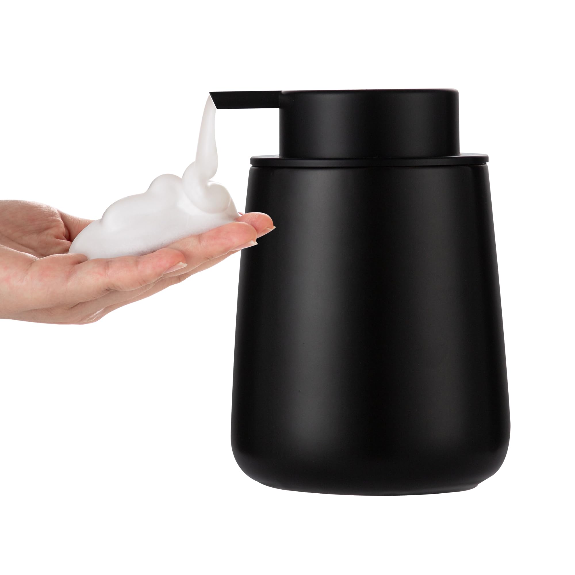 Enra Dispensador de jabón negro espumoso, dispensador de jabón de espuma moderno recargable de cerámica de 12 onzas para baño y co