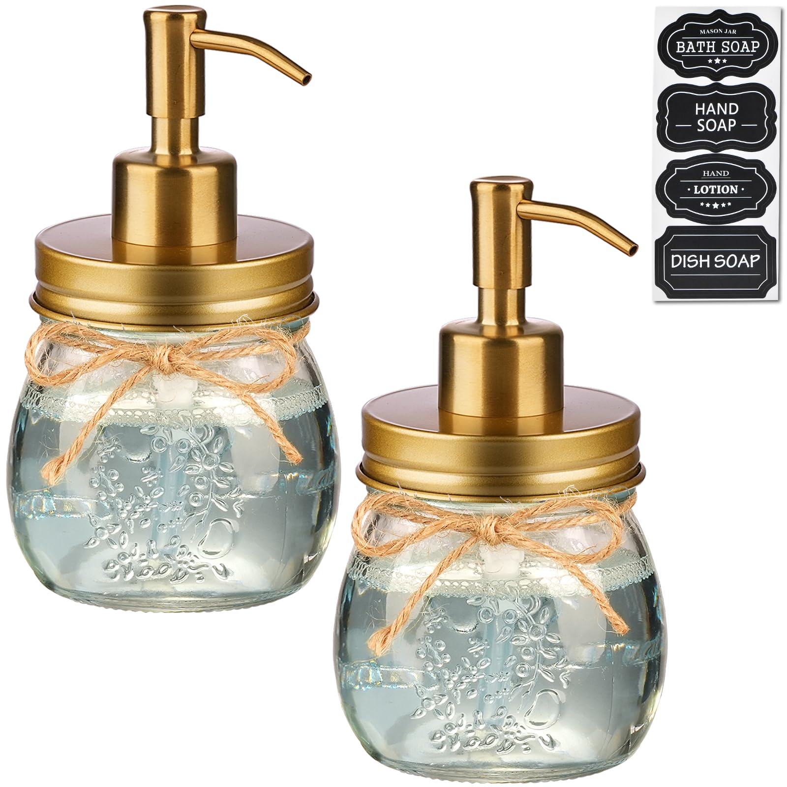 Amolliar Dispensador de jabón líquido en tarro Mason de 10 onzas, tapa de bomba de acero inoxidable, bonita decoración de granja p