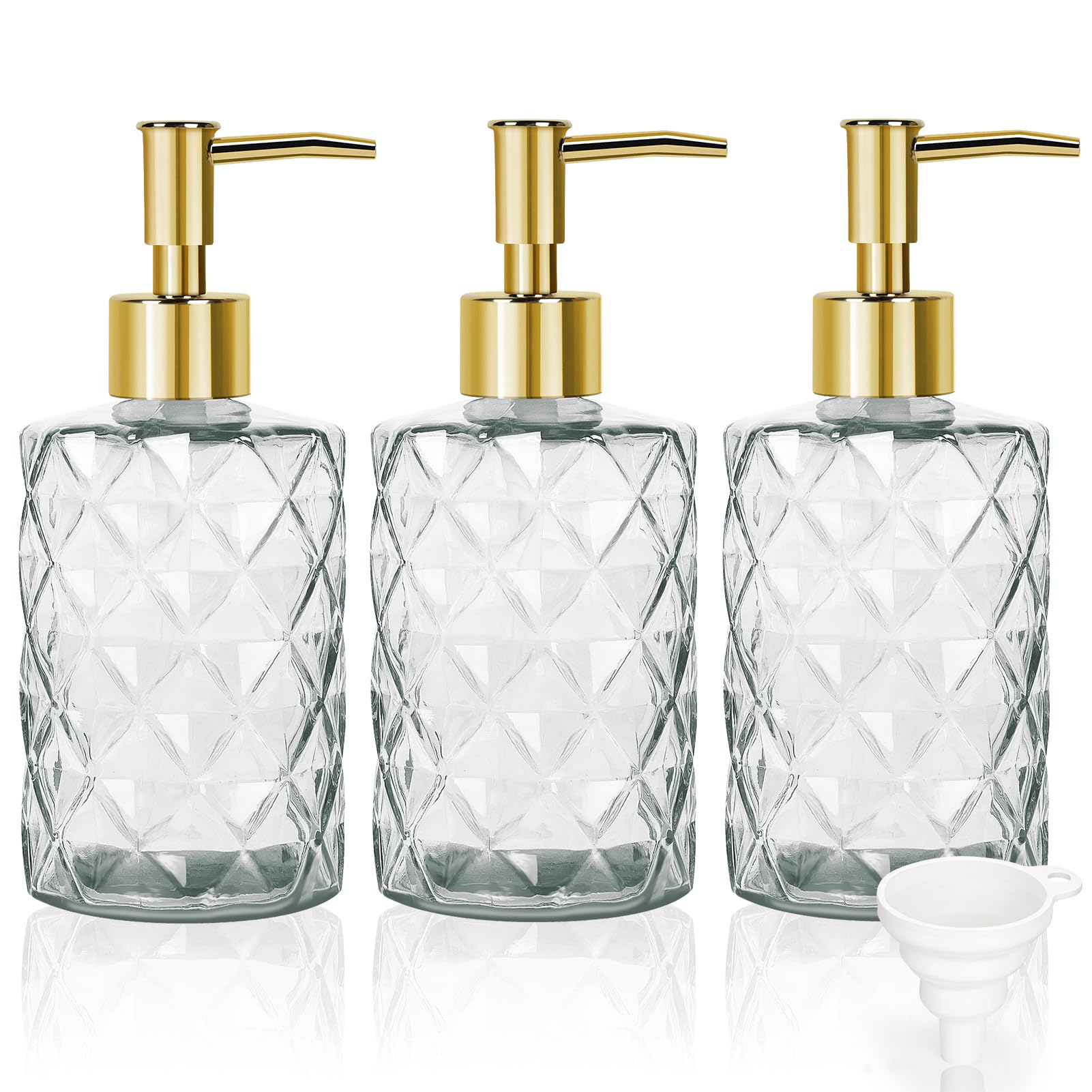 Paquete de 3 dispensadores de jabón de vidrio, dispensador de jabón de loción de vidrio transparente de 11 onzas, dispensador de j