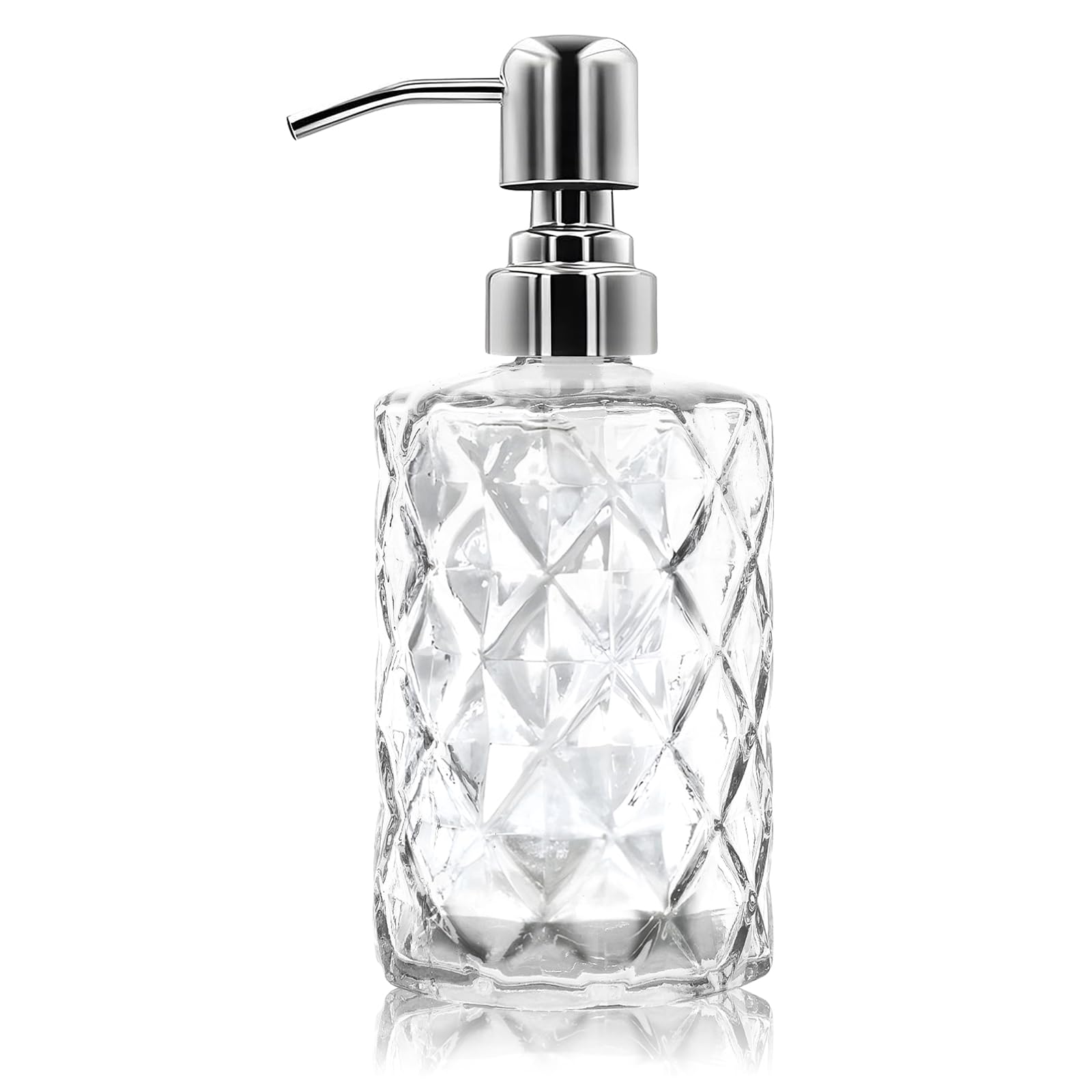 Dispensador de jabón de vidrio de 12 onzas con bomba de acero inoxidable – Dispensador de jabón líquido recargable para baño, enci