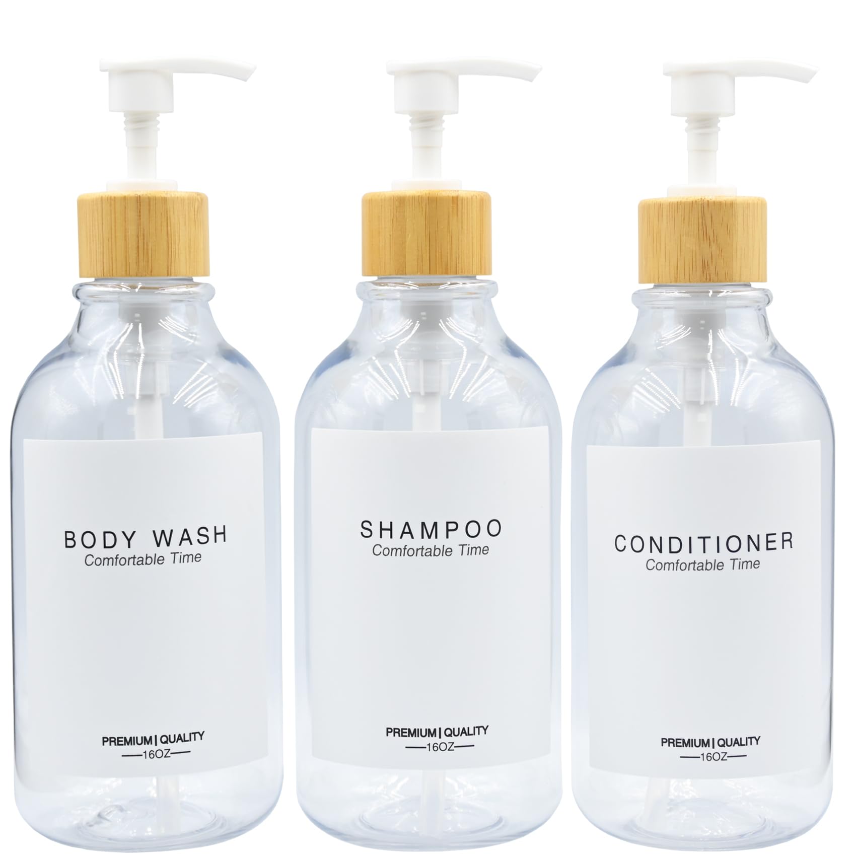 Botellas de champú y acondicionador, dispensador de boticario, bomba de bambú, botellas de champú recargables para champú, loción,