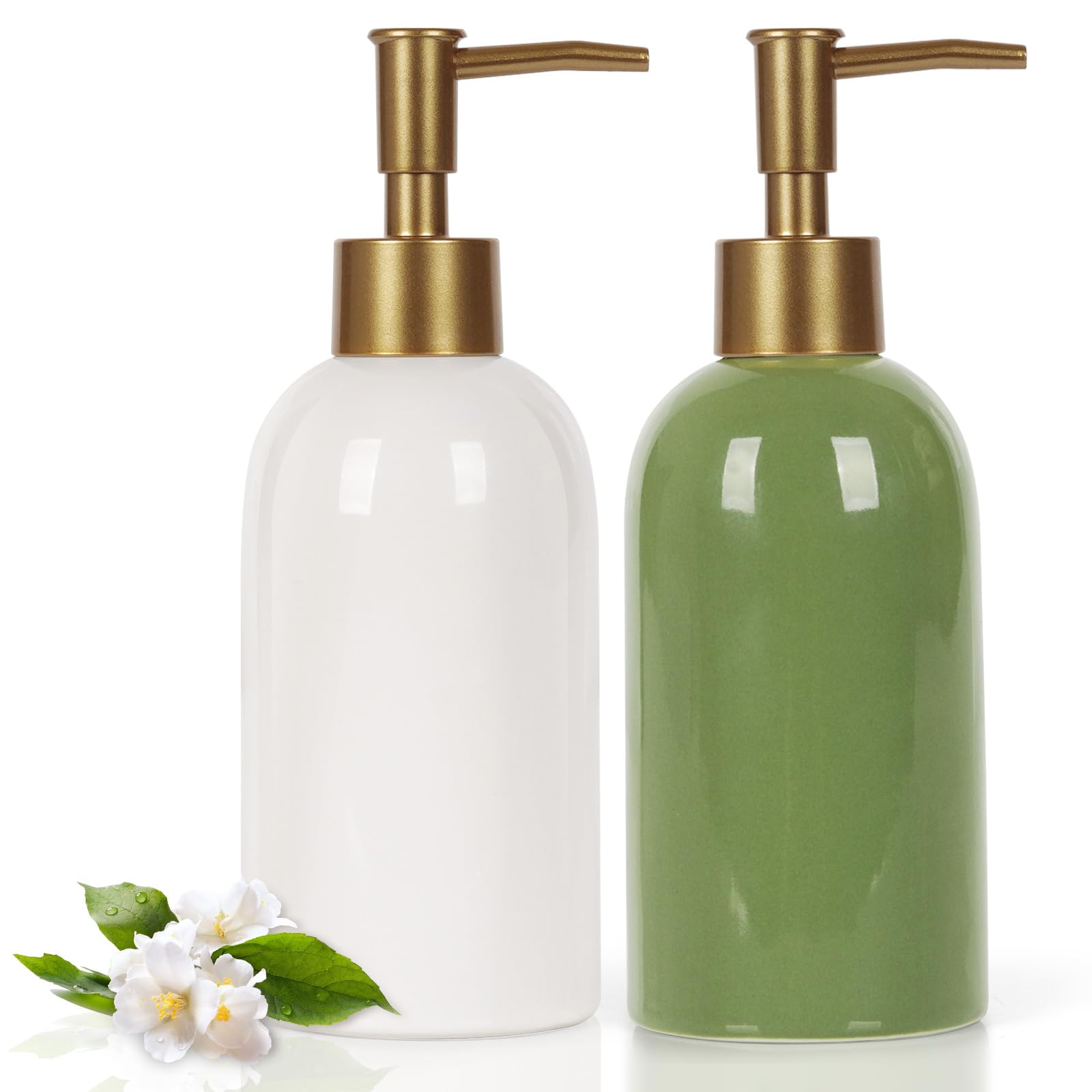 Natheeph Dispensador de jabón de cerámica de 14 onzas, 2 unidades, dispensador de jabón de cerámica, puede llenar líquido para bañ