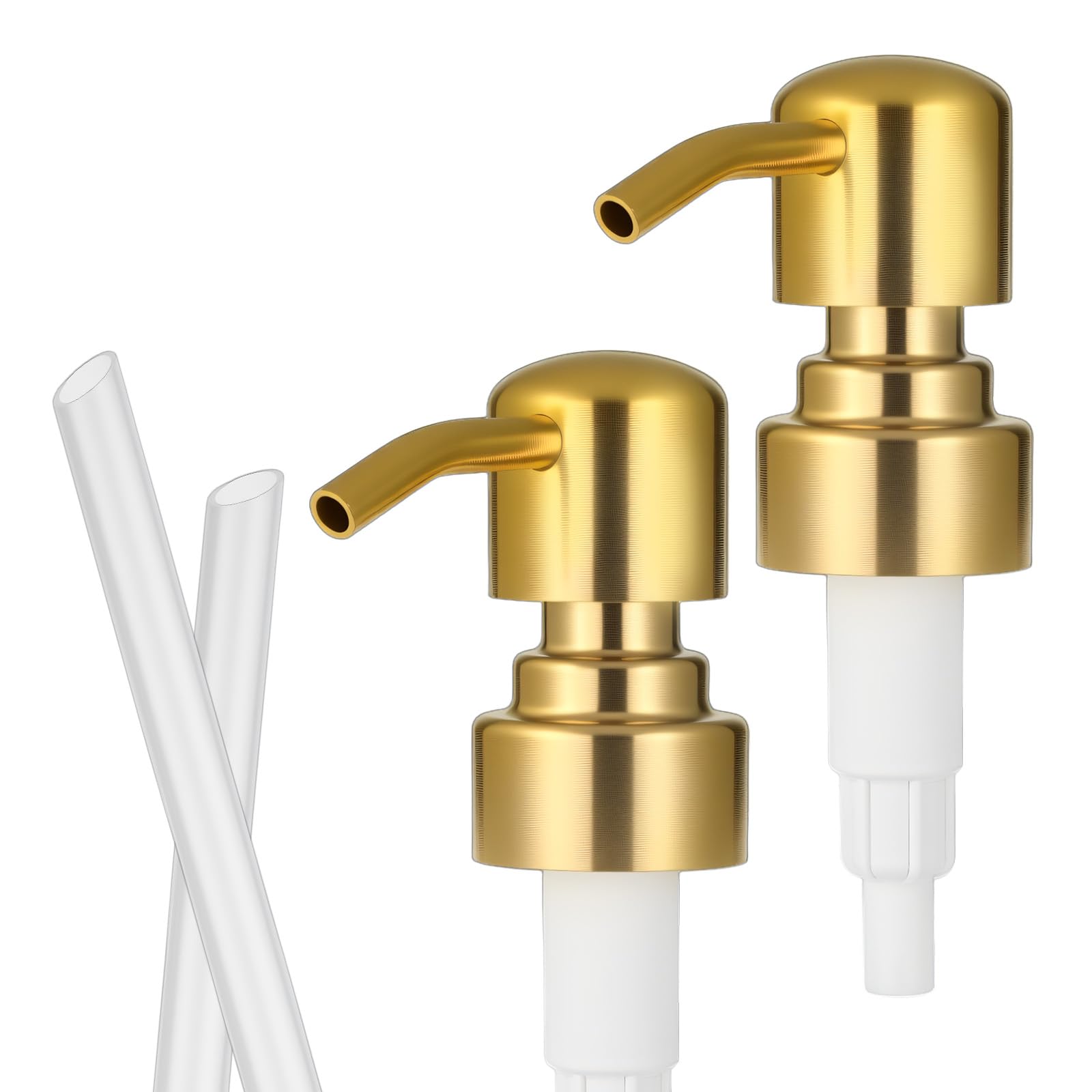 2 Pack Gold Soap Dispenser Pump Replacement, Stainless Steel Hand Liquid Soap Pump for Regular Mouth Bottles Standard 28/400 Neck
