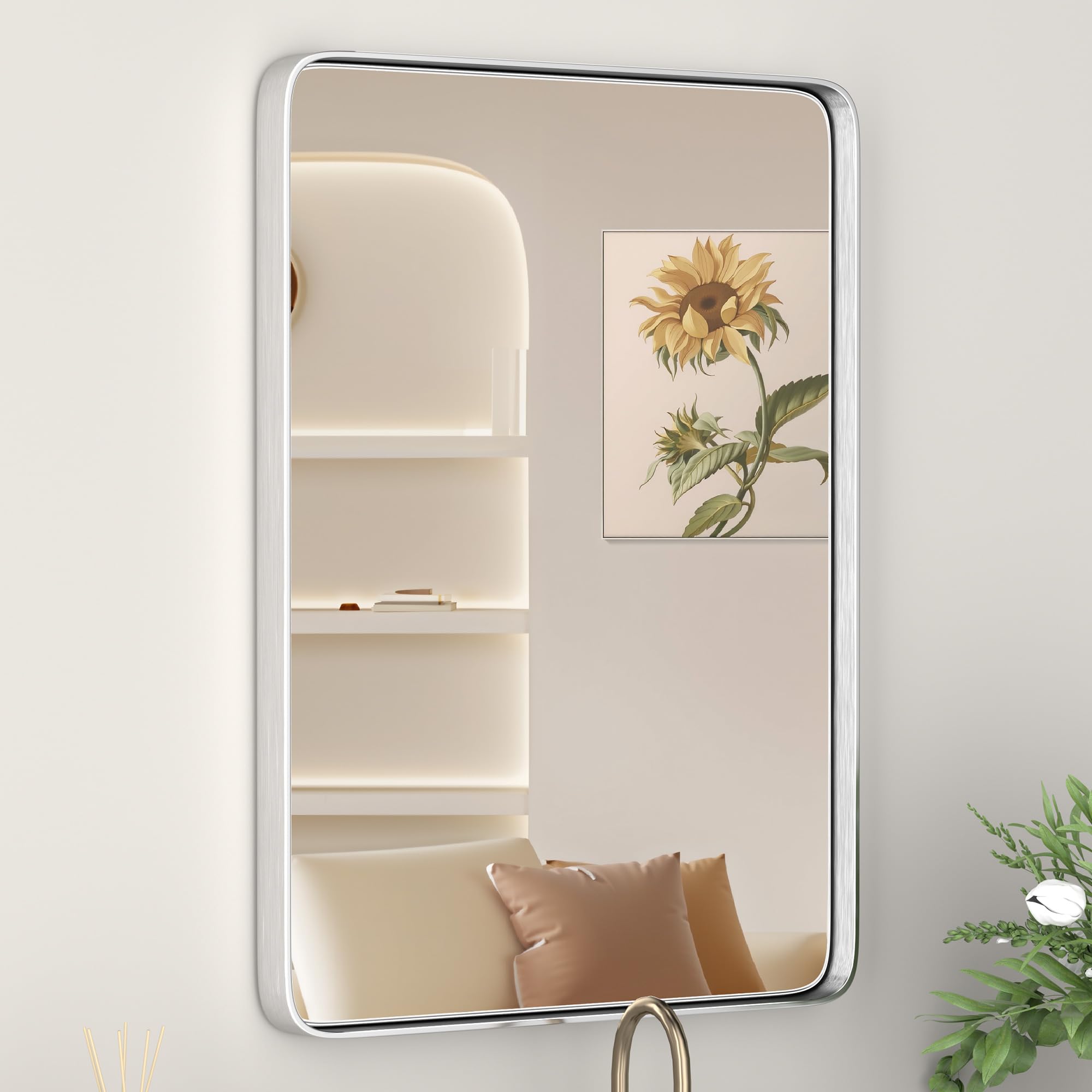 Ruomeng Espejo de pared rectangular sin marco, espejo de 16 x 24 pulgadas, espejo de borde biselado para tocador de baño y entrada