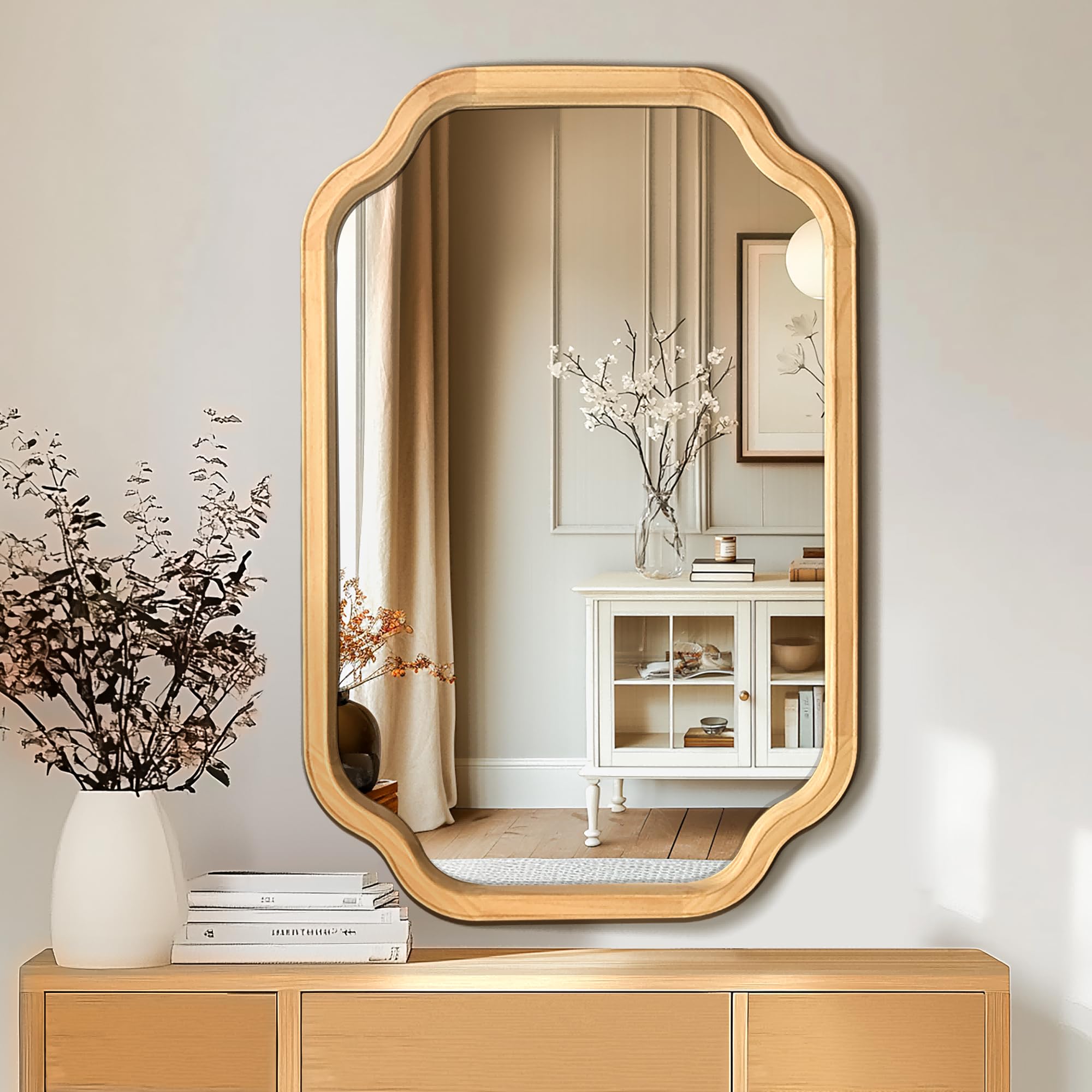 Espejo de baño de madera para pared, 24 x 36 pulgadas, espejo de tocador rústico para sobre el fregadero, espejo de pared de mader
