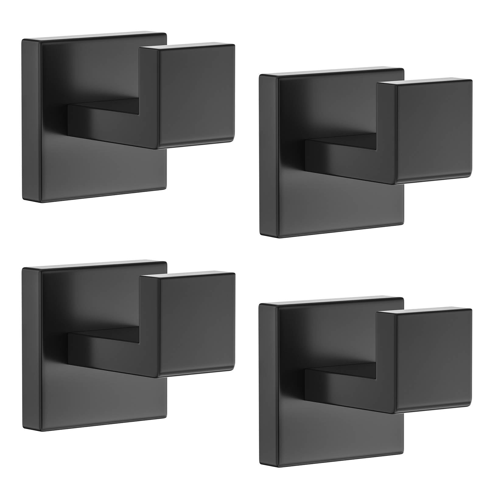 APLusee Gancho para toallas de baño negro mate, paquete de 4, gancho de acero inoxidable para abrigos, montaje en pared