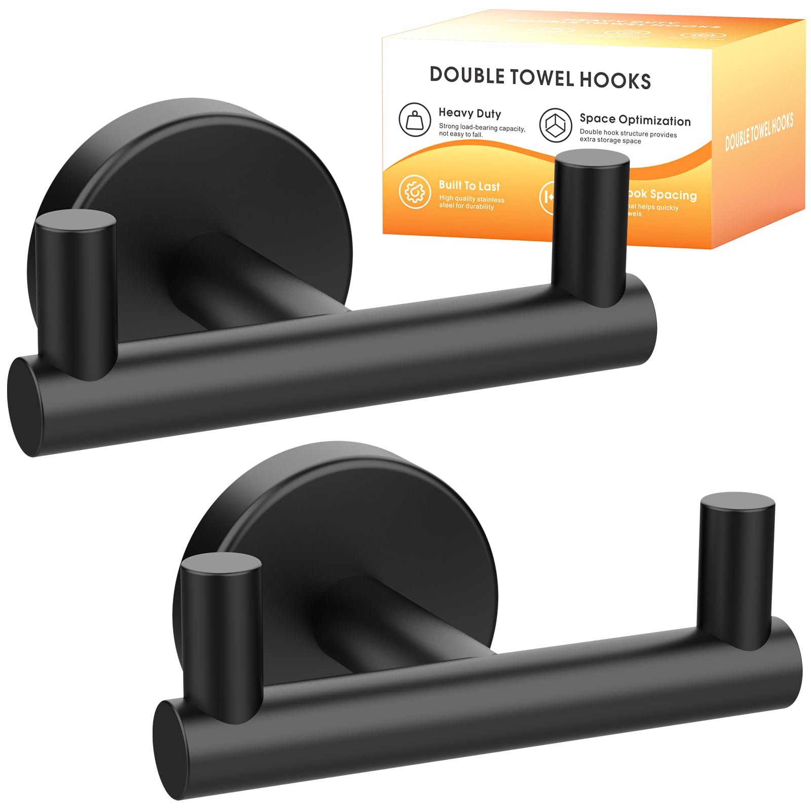 NearMoon Gancho doble para toallas de baño, soporte para toallas de acero inoxidable SUS304, gancho doble resistente para baño, sa