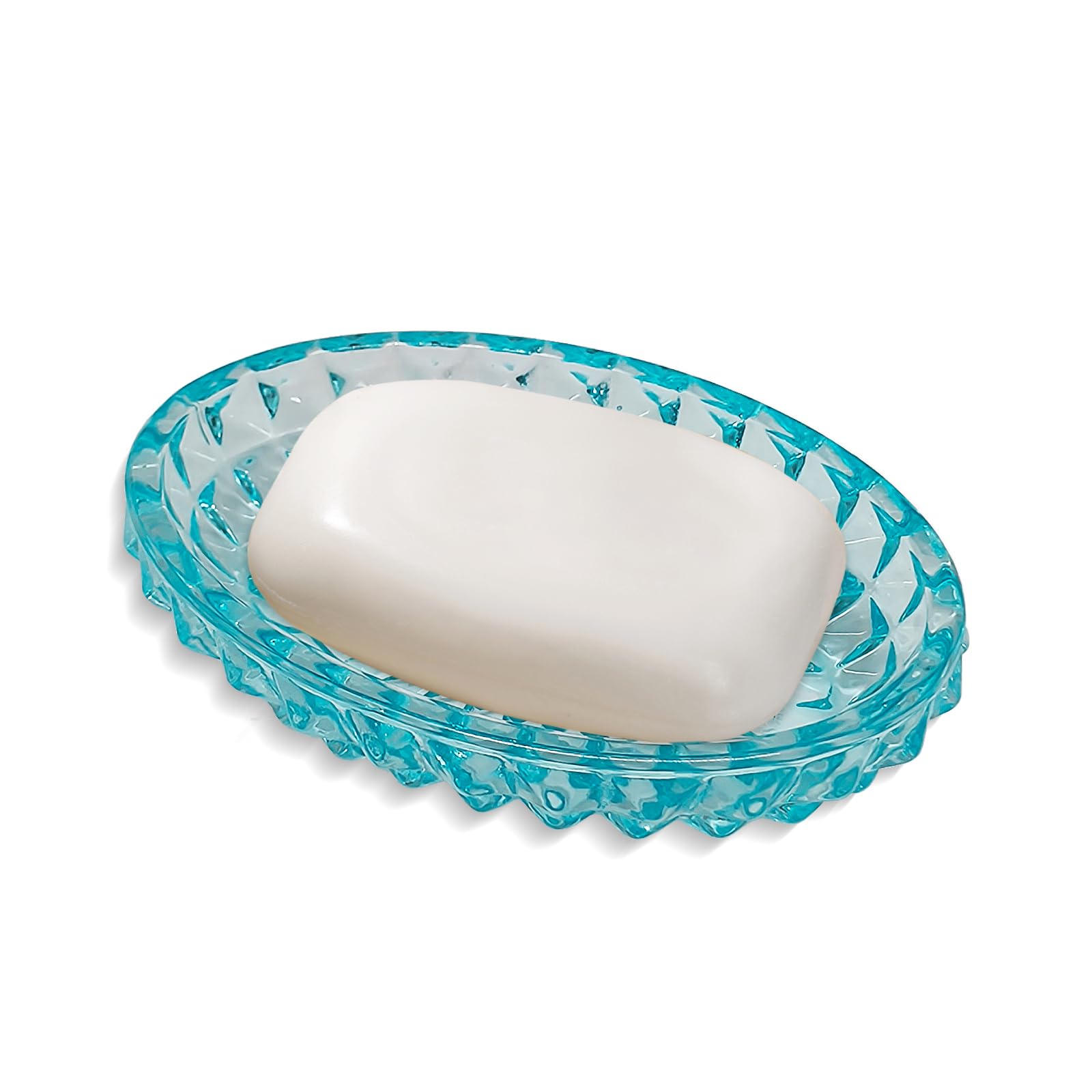 Jabonera de cristal azul con lados elevados en relieve, soporte de jabón de vidrio ovalado para encimera de baño, fregadero de coc
