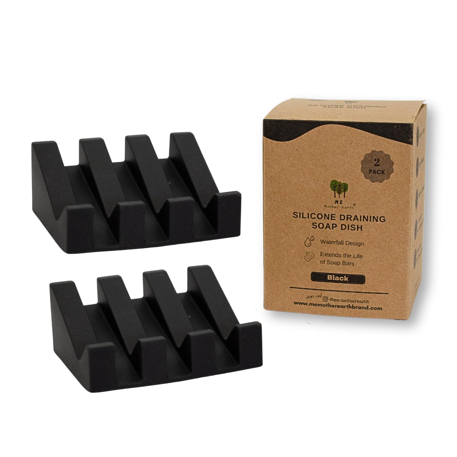 Jabonera de silicona, paquete de 2 (negro), escurridor de cascada para baño, antideslizante para jabón en barra, soporte de esponj