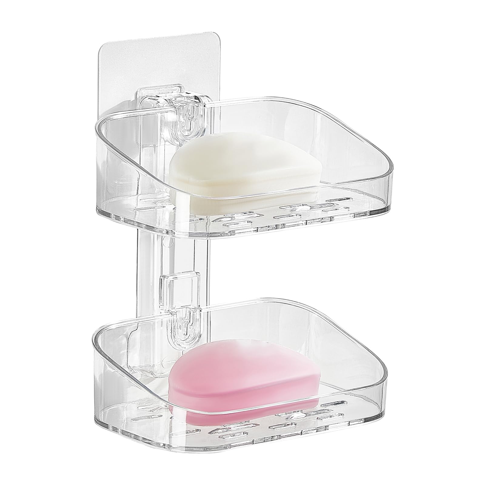 Soporte para jabonera, soporte adhesivo para pared de ducha, bandeja de jabón de plástico de 2 niveles para montar en la pared con