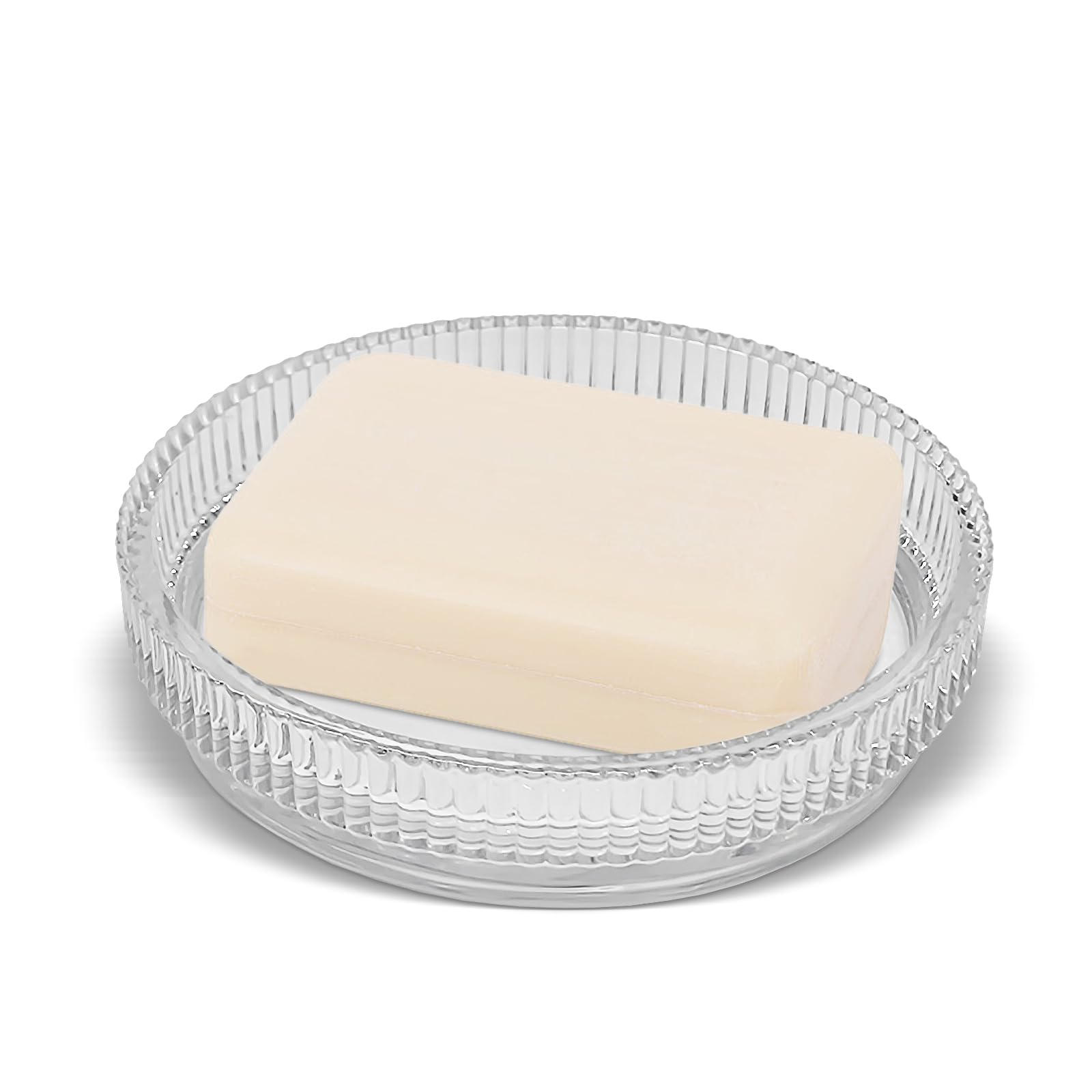 Jabonera de vidrio transparente con barra redonda para encimera de baño, fregadero de cocina