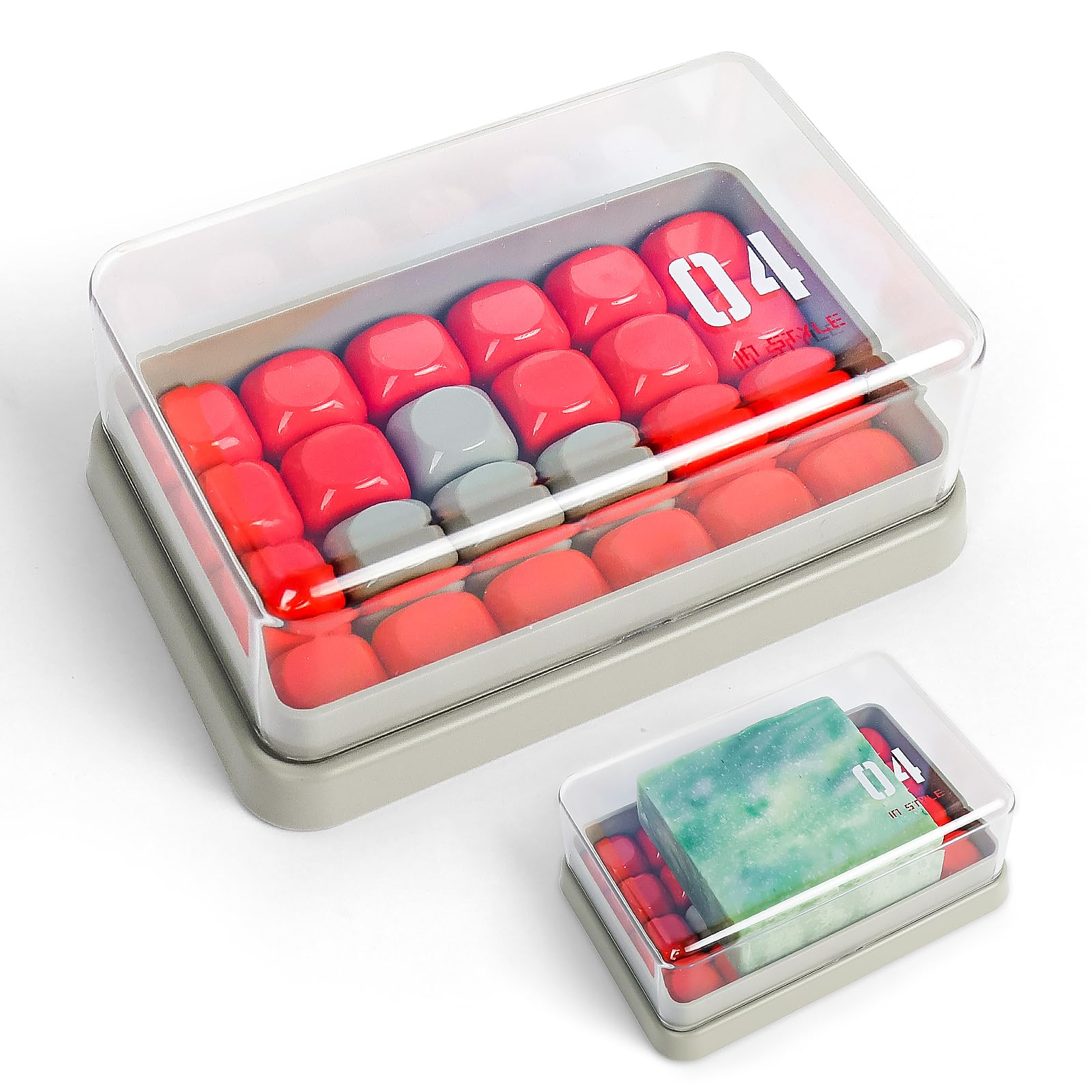 Jabonera de barra grande, soporte para barra de champú y acondicionador, jabonera con tapa transparente, bandeja de drenaje extraí